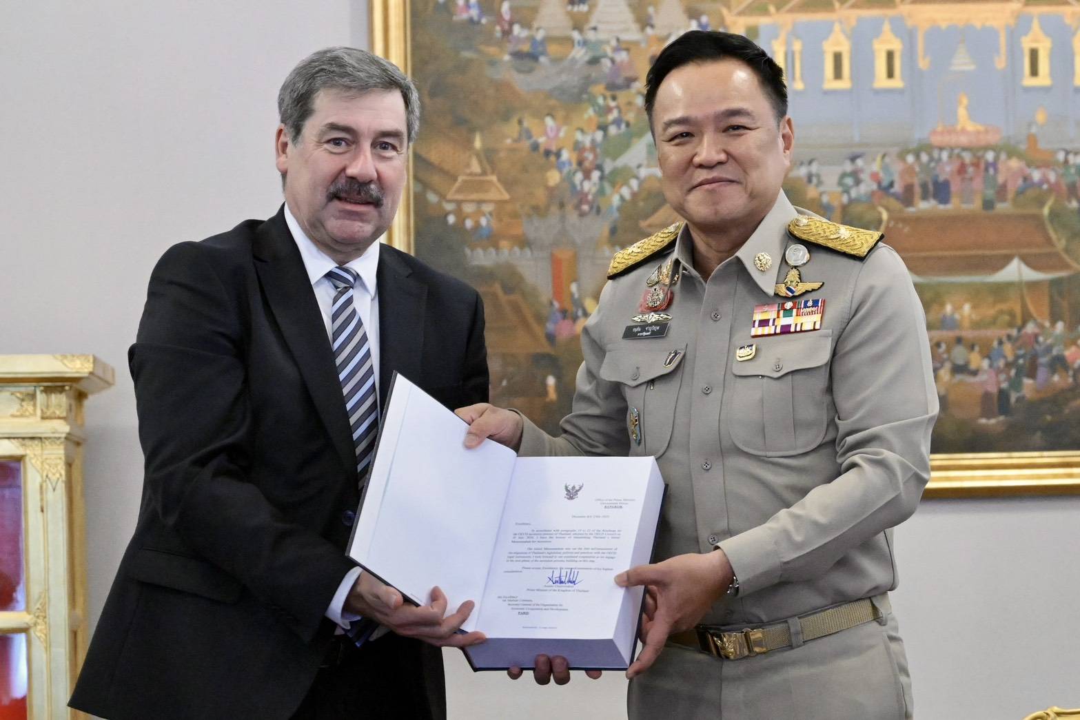 ภายหลังการหารือ นายกรัฐมนตรีได้มอบ เอกสารสำคัญ 2 ฉบับ ให้รองเลขาธิการ OECD ได้แก่