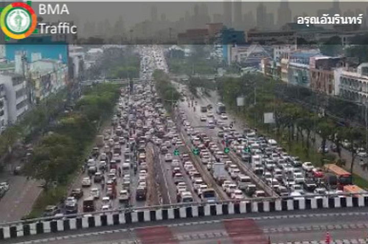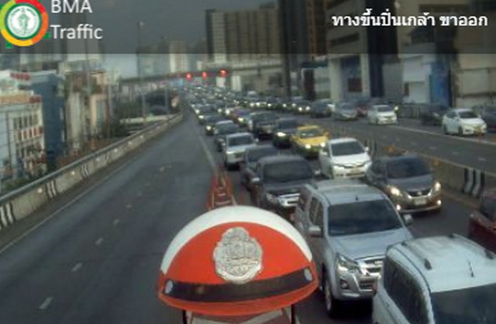 07.20 น. คู่ขนานลอยฟ้าบรมราชชนนี และถนนบรมราชชนนี ขาเข้า มุ่งหน้าสะพานพระราม 8 และสะพานสมเด็จพระปิ่นเกล้า
