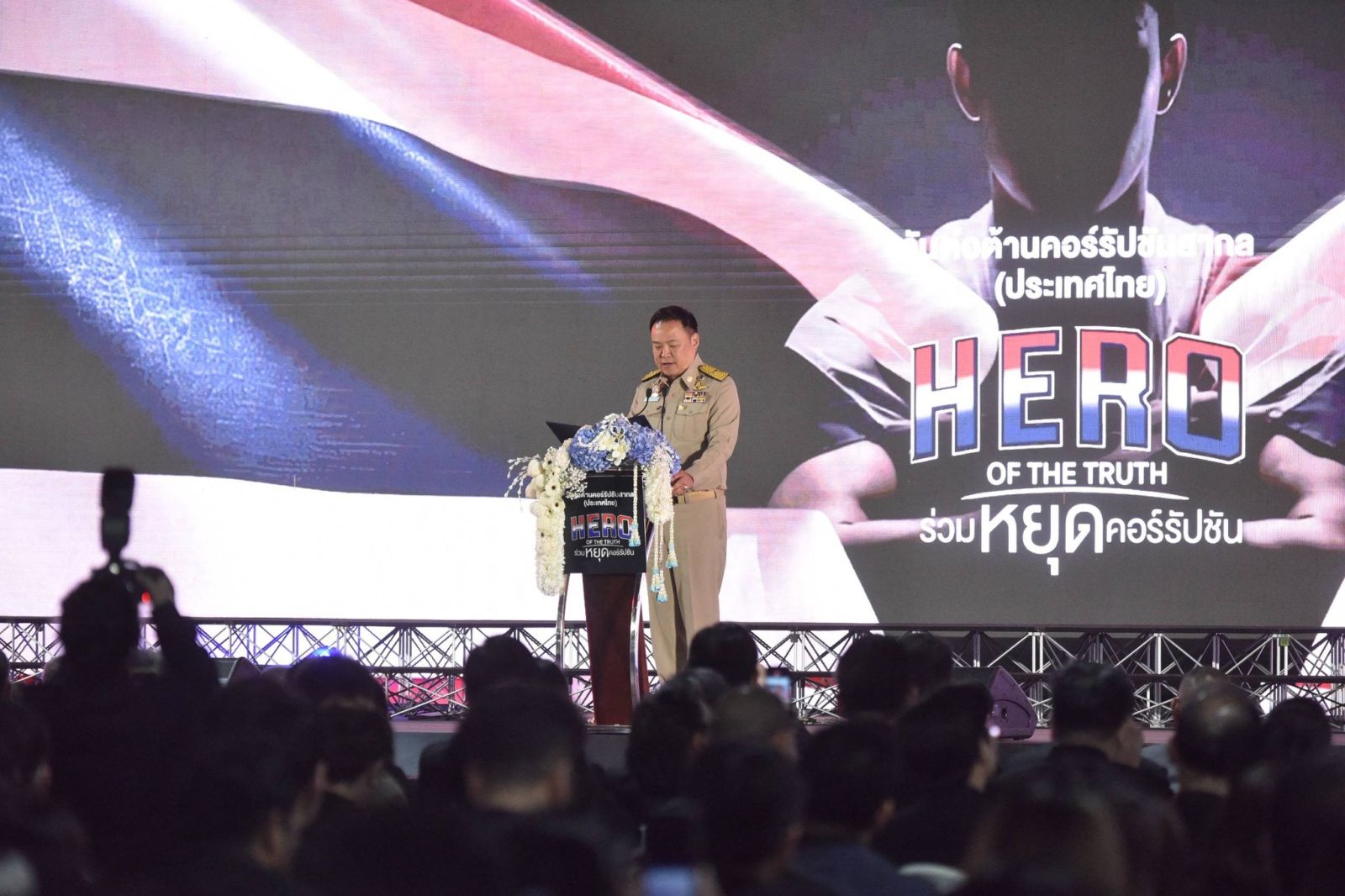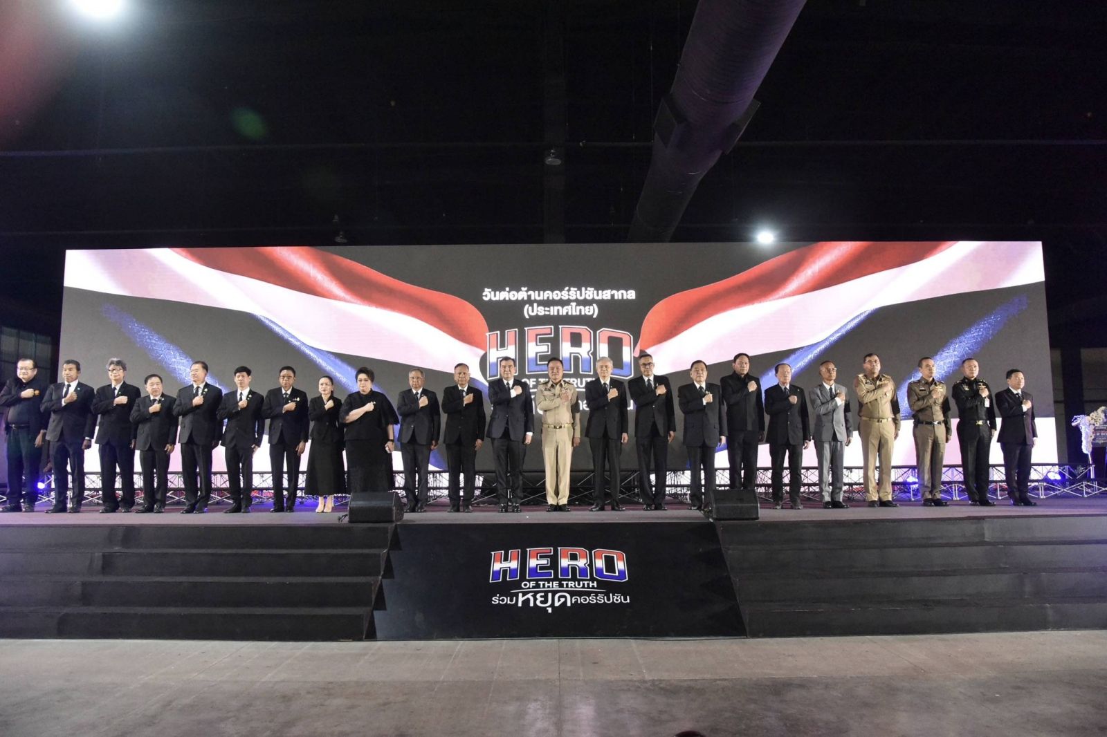 นายกฯ ขอบคุณทุกภาคส่วนที่ร่วมมือและทุ่มเทในการแก้ไขปัญหาการทุจริต ตอกย้ำจุดยืนของคนไทยว่า “ไม่ทำ ไม่ทน และไม่เฉย” ต่อการทุจริตอีกต่อไป จากนั้น นายกฯ ได้นำประกาศเจตนารมณ์วันต่อต้านคอร์รัปชันสากล พร้อมเปิดสัญลักษณ์ “HERO OF THE TRUTH ร่วมหยุดคอร์รัปชัน” เพื่อแสดงเจตนารมณ์แน่วแน่ของทุกหน่วยงานในการต่อต้านการทุจริตคอร์รัปชันในทุกรูปแบบ