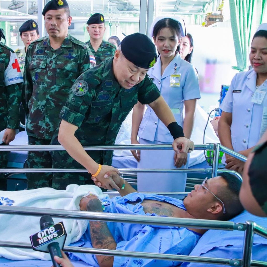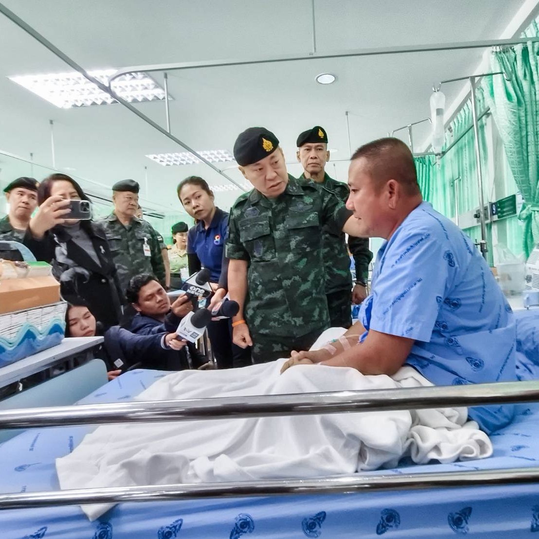 โดยเลขาฯ กอ.รมน. ได้กล่าวให้กำลังใจว่า “พักรักษาตัวให้ดี เพื่อน ๆ ที่อยู่ทางโน้น จะสู้ให้” พร้อมเน้นย้ำให้ทุกส่วนราชการดูแลกำลังพลที่ได้รับบาดเจ็บอย่างดีที่สุด