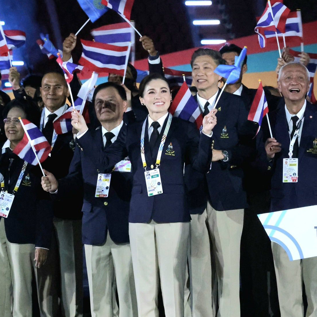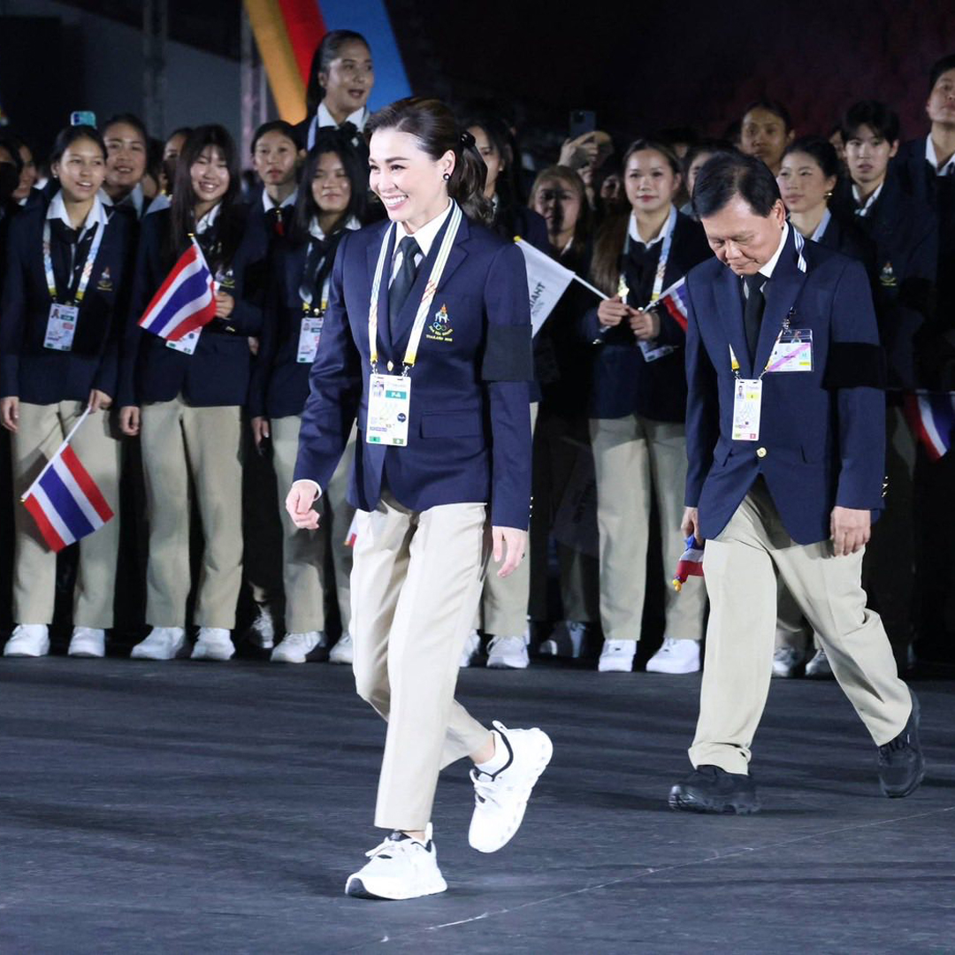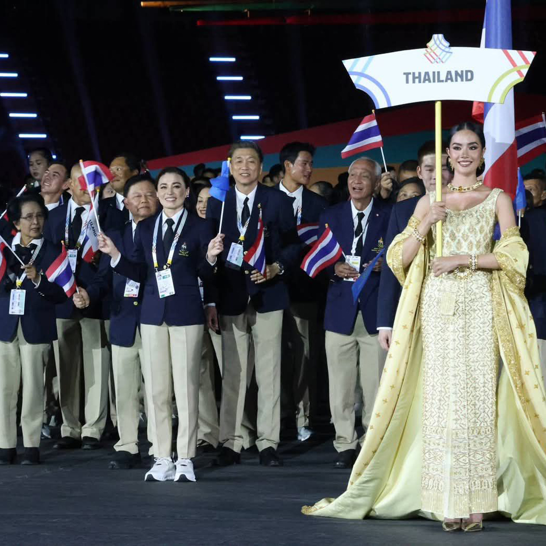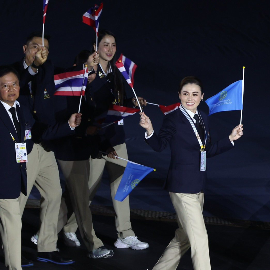 สมเด็จพระราชินี ทรงร่วมเดินนำขบวนทัพนักกีฬาไทย ในพิธีเปิดซีเกมส์ 2025 โดยมี โอปอล-สุชาตา ช่วงศรี เจ้าของมงกุฎ Miss World 2025 เชิญป้ายชื่อประเทศไทย พร้อมด้วย กุลวุฒิ วิทิตศานต์ และ จันทร์แจ่ม สุวรรณเพ็ง 2 นักกีฬาไทยทำหน้าที่ถือธงไตรรงค์นำทัพนักกีฬาเข้าสู่สนามราชมังคลากีฬาสถาน