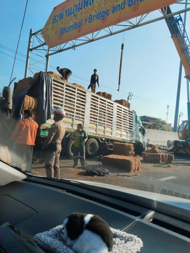 เวลา 08.30 น. เจ้าหน้าที่คืบหน้าเวลานี้อยู่ระหว่างใช้รถเครนดำเนินการเคลื่อนย้าย จับรถตั้งได้แล้ว เหลือดำเนินการเคลื่อนย้ายฟางอัดก้อนที่ตกหล่น รถยังผ่านได้ 1 ช่องทางขวา การจราจรติดขัดมาก ไม่จำเป็นโปรดหลีกเลี่ยงเส้นทาง