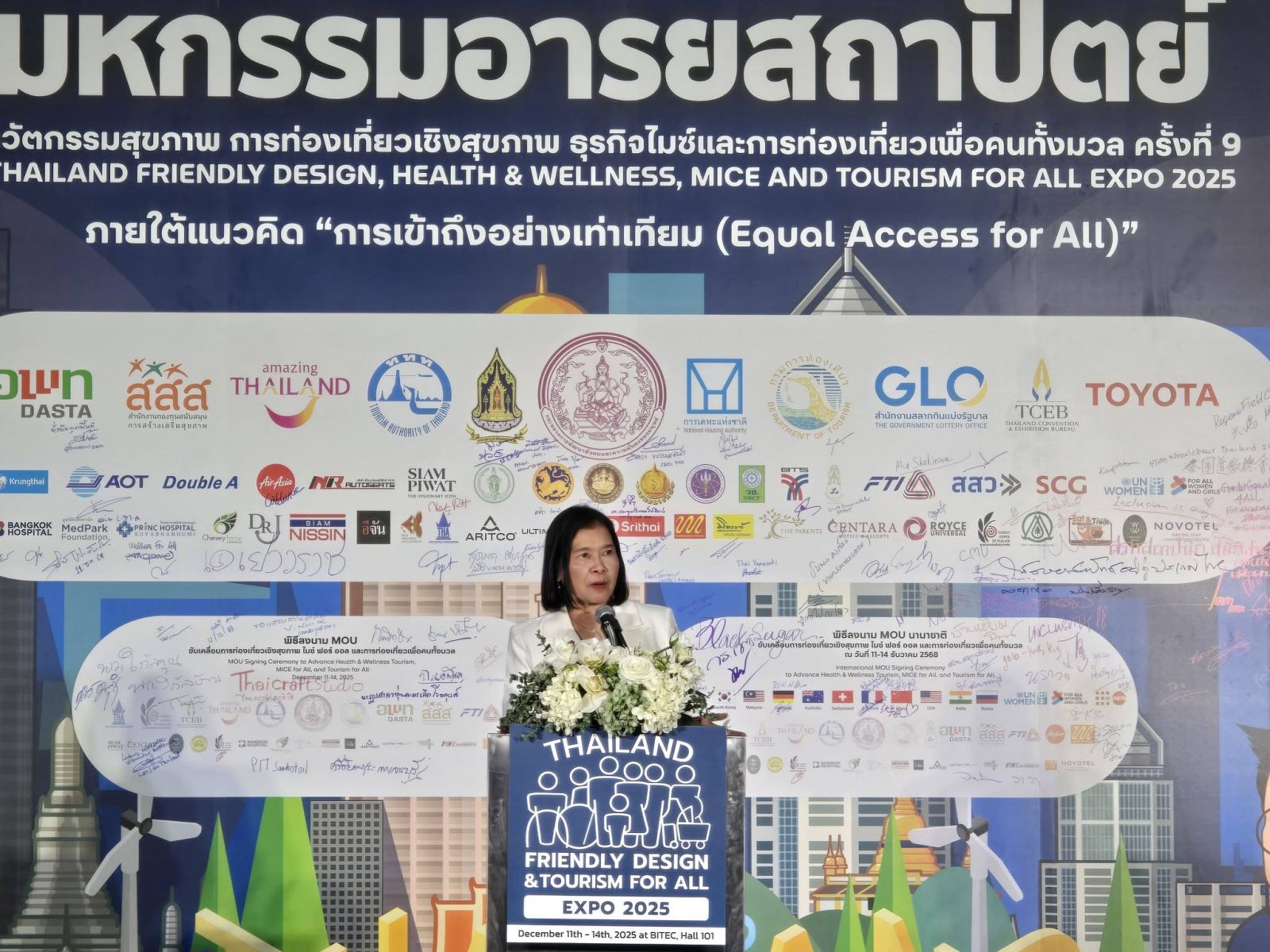 วันที่ 12 ธ.ค. 68 FD Expo 2025 จัดใหญ่ส่งท้ายปี เมืองเส้นทางนำร่อง 9 เส้นทางดันไทยสู่เมืองศูนย์กลางด้านการท่องเที่ยวเชิงสุขภาพและการท่องเที่ยวเพื่อคนทั้งมวล โดย มูลนิธิอารยสถาปัตย์เพื่อคนทั้งมวล ร่วมกับ กระทรวงการพัฒนาสังคมและความมั่นคงของมนุษย์ กระทรวงวัฒนธรรม และการท่องเที่ยวแห่งประเทศไทย (ททท.) ผนึกกำลังพันธมิตรจากหน่วยงานภาครัฐ รัฐวิสาหกิจ ภาคธุรกิจเอกชน องค์กรระหว่างประเทศ และภาคีเครือข่ายทั้งในและต่างประเทศ จัดงาน “Thailand Friendly Design & Tourism for All Expo 2025 : มหกรรมอารยสถาปัตย์ นวัตกรรมสุขภาพ และการท่องเที่ยวเพื่อคนทั้งมวล ครั้งที่ 9” วันที่ 11 – 14 ธันวาคม 2568 ณ ฮอลล์ 101 ศูนย์นิทรรศการและการประชุมไบเทค-บางนา กรุงเทพมหานคร
