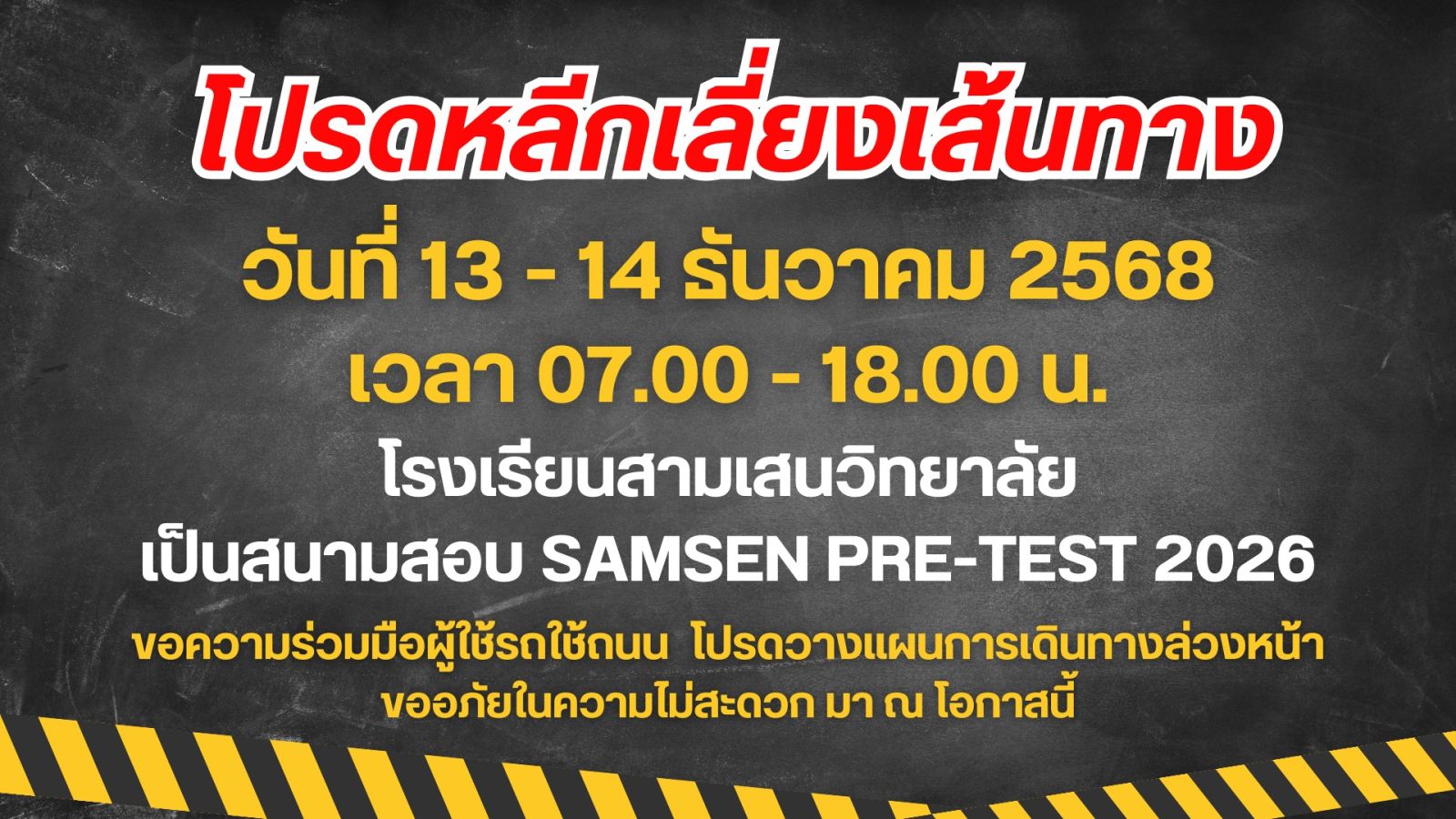 เนื่องจากโรงเรียนเป็นสนามสอบ SAMSEN PRE-TEST 2026