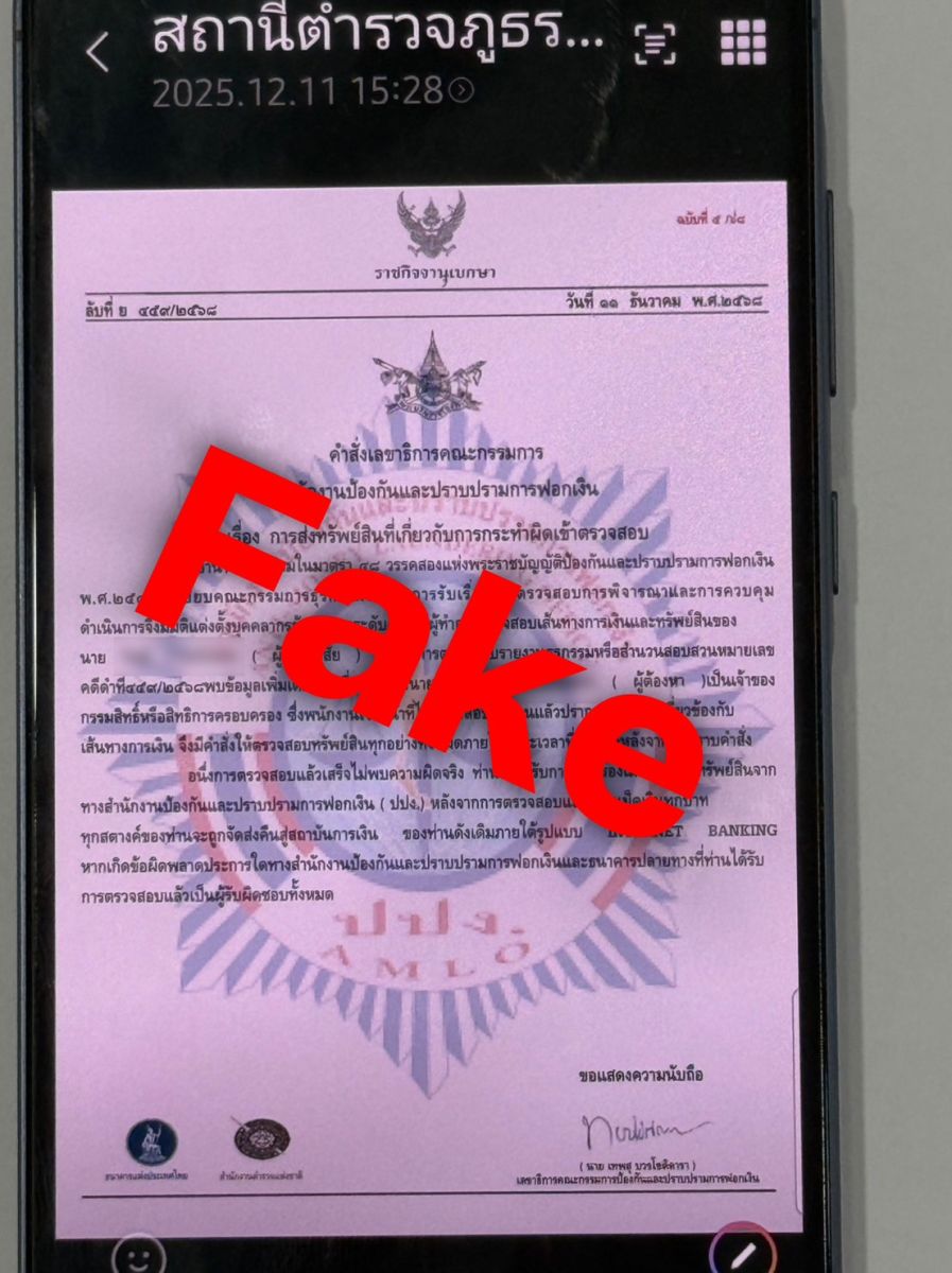 ศูนย์ต่อต้านการฉ้อโกงออนไลน์ (ACSC) ระงับความเสียหายทันท่วงที เข้าช่วยเหลือเหยื่อวัย76 ปีหวิดเสียทรัพย์ หลังถูกมิจฉาชีพลวงขายสร้อยทอง-แหวนเพชร อ้างโอนตรวจสอบคดีฟอกเงิน