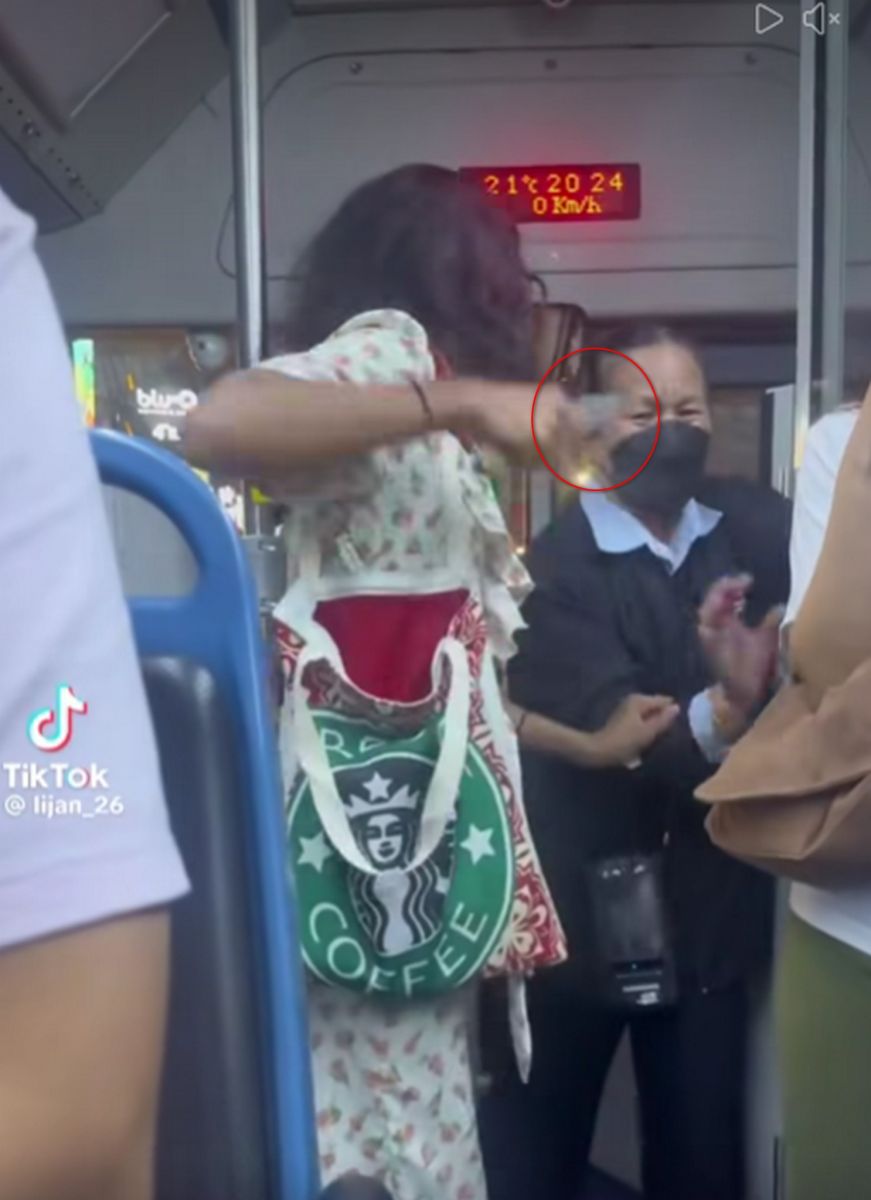 คลิปบันทึกเหตุการณ์บนรถโดยสารประจำทางในเส้นทาง สายสุขุมวิท เมื่อหญิงรายหนึ่งสวมชุดลาย นำอาวุธมีดออกมาจากกระเป๋าสะพาย และพยายามจะเข้าทำร้ายกระเป๋ารถเมล์ ส่งผลให้ผู้โดยสารที่อยู่บนรถเกิดความแตกตื่น