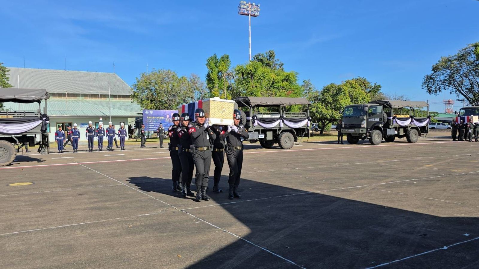 วันนี้ (14 ธ.ค.68) มณฑลทหารบกที่ 22 ประกอบพิธีส่งศพทหารกล้า จำนวน 4 นาย ผู้สละชีวิตในการปฏิบัติหน้าที่เพื่อปกป้องอธิปไตยของชาติ จากเหตุการณ์ปะทะตามแนวชายแดนไทย–กัมพูชา บริเวณพื้นที่เนิน 677 ช่องอานม้า กลับสู่ภูมิลำเนาในจังหวัดพระนครศรีอยุธยา, สุพรรณบุรี, กระบี่ และนราธิวาส เพื่อประกอบพิธีทางศาสนาอย่างสมเกียรติ ณ กองบิน 21 จังหวัดอุบลราชธานี