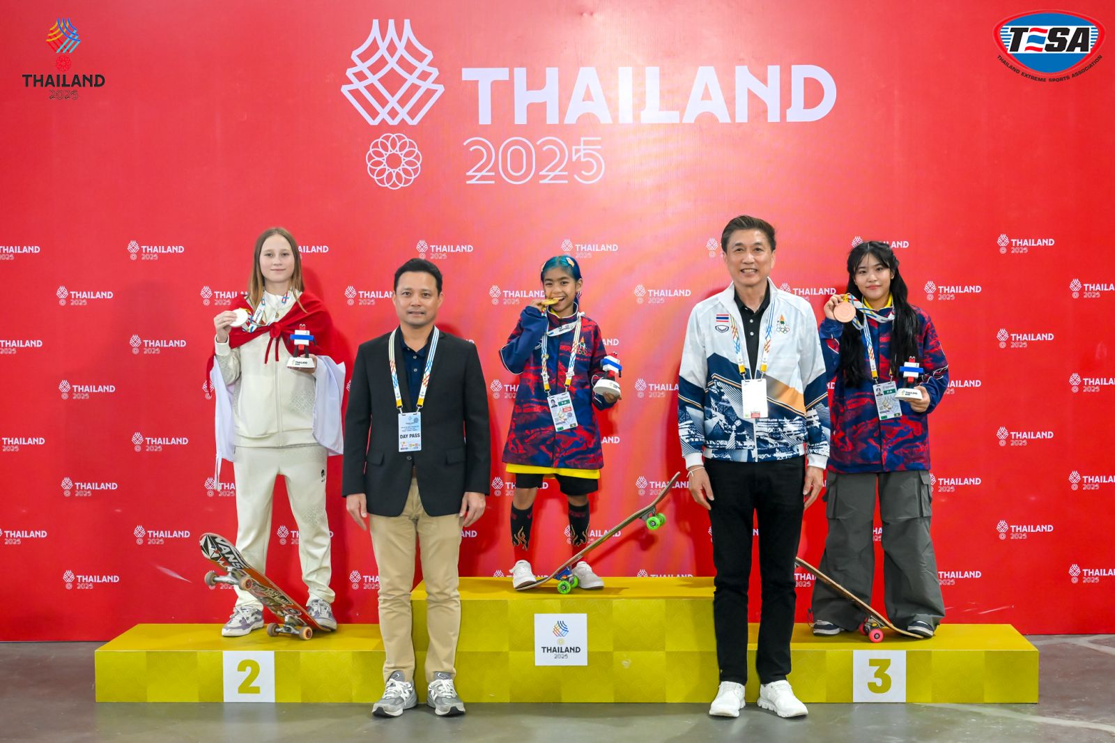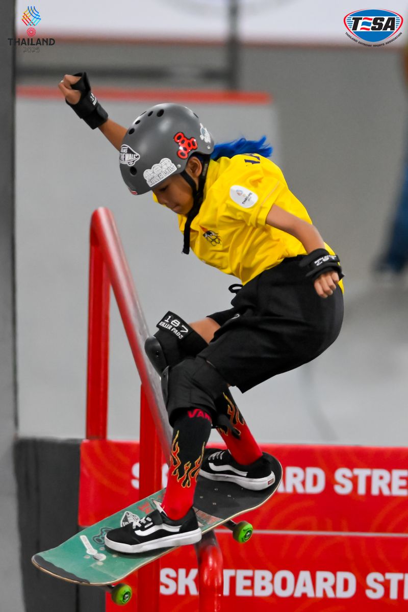 และ 'เอสที' เด็กหญิงวารีรยา สุขเกษม วัย 13 ปี นักสเก็ตบอร์ดทีมชาติไทย คว้าเหรียญทองแดง ทำได้ 111.18 คะแนน ในการแข่งขันสเก็ตบอร์ดสตรีท ในมหกรรมกีฬาซีเกมส์ ครั้งที่ 33 แข่งขันกันที่สนามกีฬาเอ็กซ์ตรีม การกีฬาแห่งประเทศไทย หัวหมาก เมื่อวันที่ 14 ธ.ค. 2568
