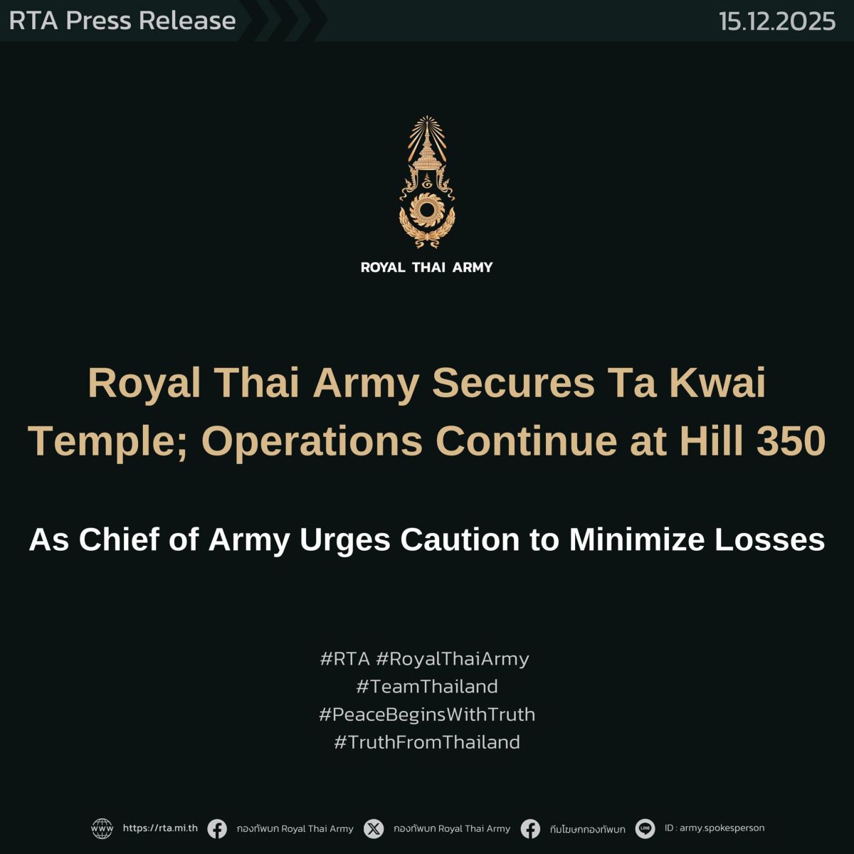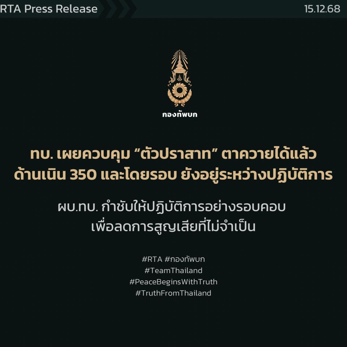 ศูนย์ประชาสัมพันธ์กองทัพบก โดยทีมโฆษกกองทัพบก, 15 ธันวาคม 2568