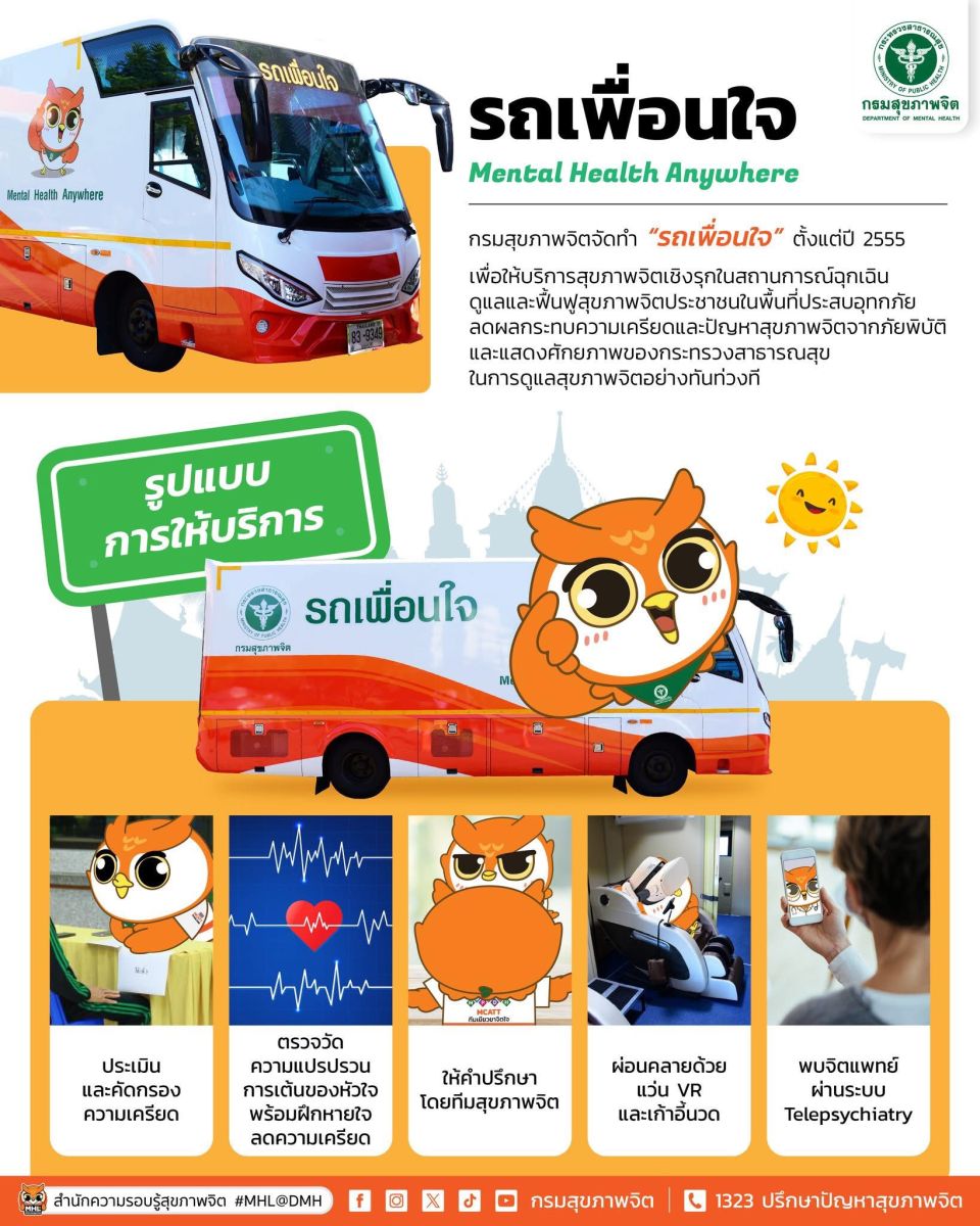 กระทรวงสาธารณสุข ส่งรถโมบายคลายเครียดดูแลสุขภาพจิตประชาชนและบุคลากรการแพทย์ที่ศูนย์พักพิงขนาดใหญ่ 1,000 -3,000 คน ควบคู่บริการตรวจจิตเวชทางไกล เพื่อดูแลกลุ่มเสี่ยงอย่างต่อเนื่อง พร้อมย้ำเรื่องการอุปโภค บริโภคน้ำสะอาด และอาหารที่อุ่นร้อน สวมหน้ากากอนามัย ล้างมือสม่ำเสมอ และหลีกเลี่ยงการสัมผัสผู้ป่วยที่มีอาการระบบทางเดินหายใจ