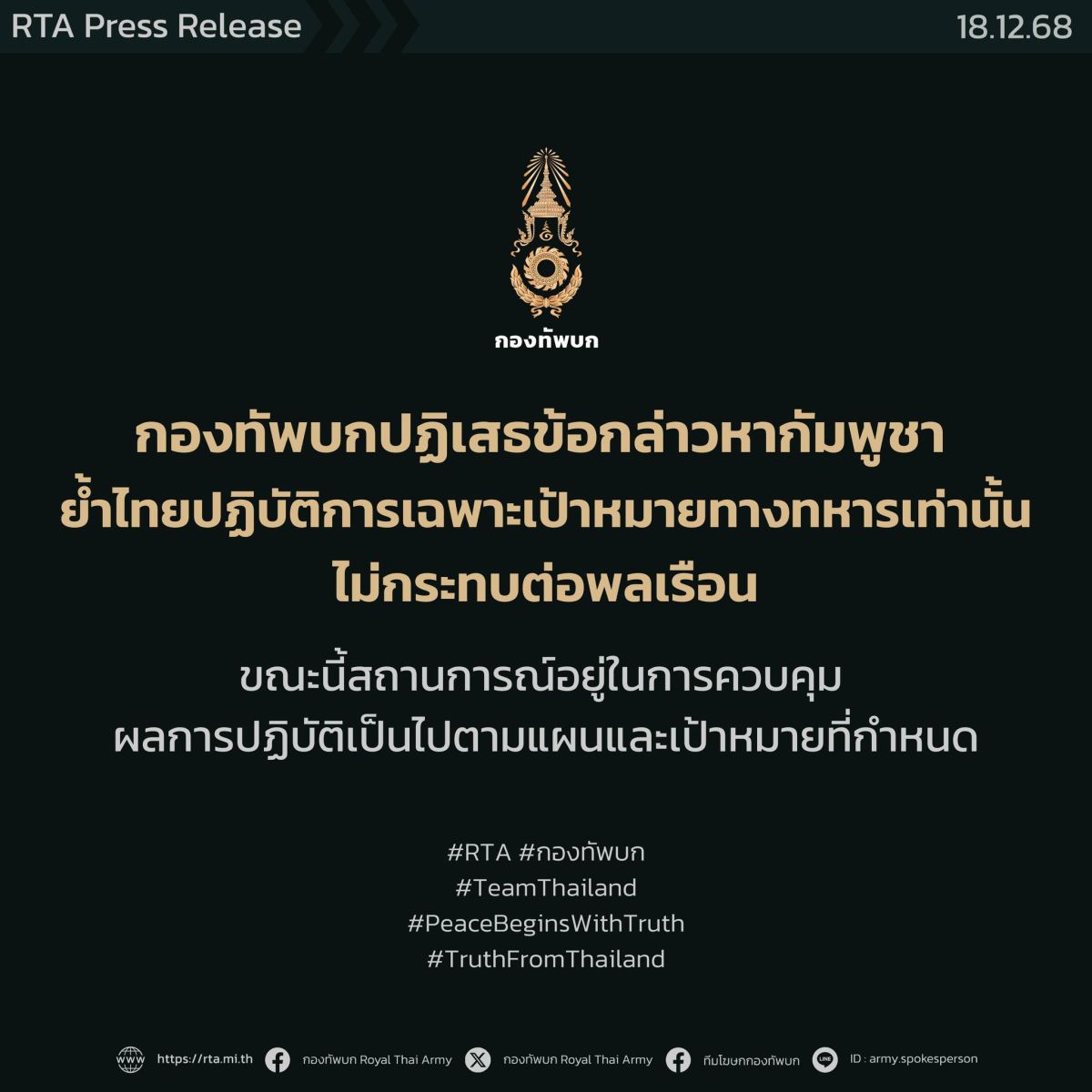 ศูนย์ประชาสัมพันธ์กองทัพบก โดยทีมโฆษกกองทัพบก, 18 ธันวาคม 2568