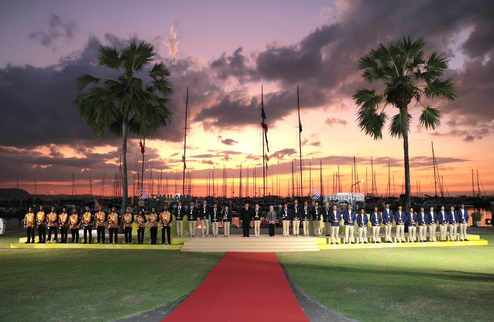 วันที่ ๑๘ ธันวาคม ๒๕๖๘ เวลา ๑๗.๕๘ น. พระบาทสมเด็จพระเจ้าอยู่หัว และสมเด็จพระนางเจ้า ฯ พระบรมราชินี เสด็จพระราชดำเนินไปยังบริเวณพิธีพระราชทานเหรียญรางวัลการแข่งขันกีฬาเรือใบ ในการแข่งขันกีฬาซีเกมส์ ครั้งที่ ๓๓ พ.ศ. ๒๕๖๘ ณ ที่นั้น นายอนุทิน ชาญวีรกูล นายกรัฐมนตรี ร้อยเอก ธรรมนัส พรหมเผ่า รองนายกรัฐมนตรี ประธานกรรมการการกีฬาแห่งประเทศไทย ผู้ช่วยศาสตราจารย์พิมล ศรีวิกรม์ ประธานคณะกรรมการโอลิมปิคแห่งประเทศไทย ในพระบรมราชูปถัมภ์ นายอรรถกร ศิริลัทธยากร รัฐมนตรีว่าการกระทรวงการท่องเที่ยวและกีฬา พร้อมด้วยคณะกรรมการจัดงาน ฯ เฝ้าทูลละอองธุลีพระบาทรับเสด็จ