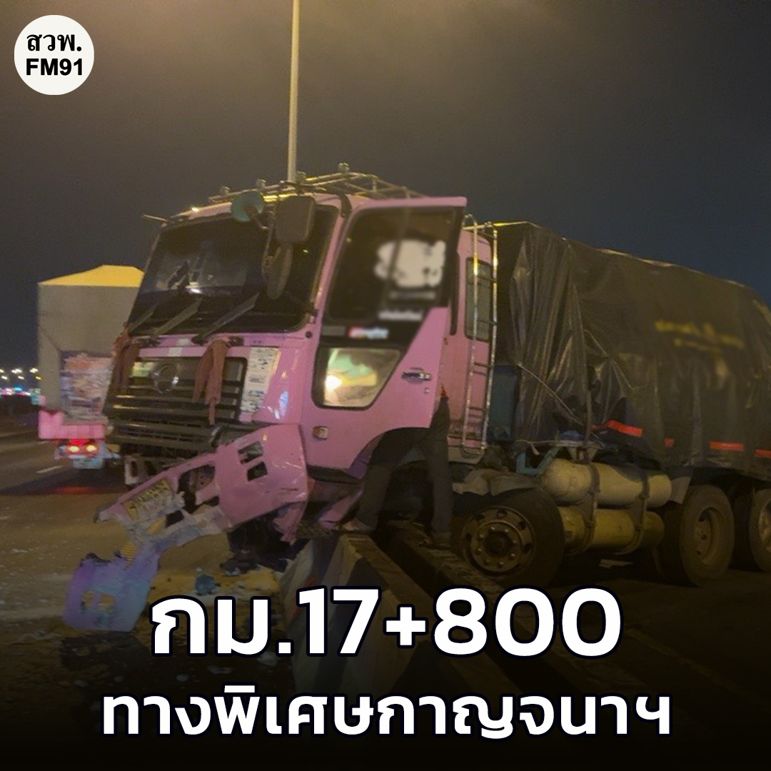 ทางพิเศษกาญจนาภิเษก กม.17+800B (จากบางขุนเทียน มุ่งหน้า บางแก้ว) รถชนกัน 5 คัน (รถบรรทุกพ่วง 2 คัน , รถตู้ 1 คัน , รถเก๋ง 2 คัน)