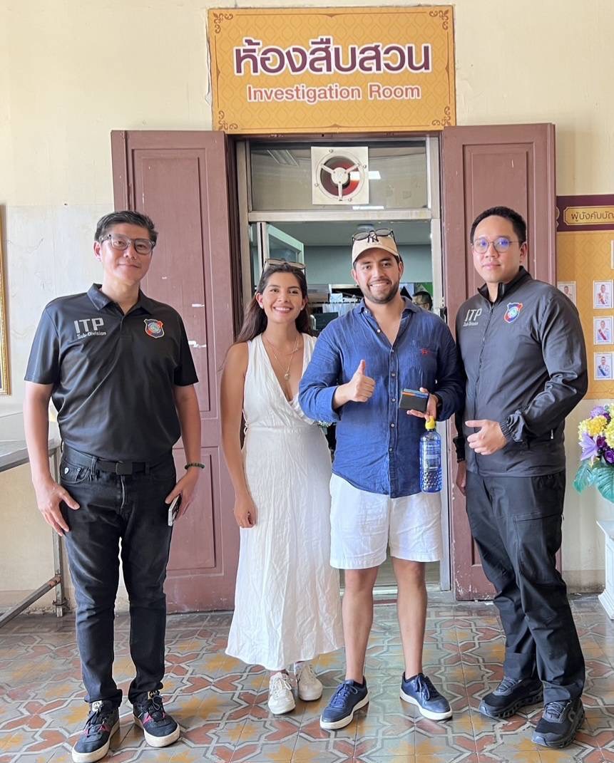 จนสามารถติดต่อ Mr. Carrasco สัญชาติ เปรู วีซ่านักท่องเที่ยว ผู้เป็นเจ้าของได้สำเร็จ ได้นัดหมายให้มารับทรัพย์สินคืนในเวลา 14.00 น. เมื่อ Mr. Carrasco เดินทางมารับทรัพย์สินและตรวจสอบพบว่าอยู่ครบถ้วน พร้อมแจ้งว่าตนได้เดินทางมาท่องเที่ยวที่พระบรมมหาราชวังและวัดโพธิ์ ได้ทำกระเป๋าดังกล่าวหล่นหายไป Mr. Carrasco ได้กล่าวแสดงความขอบคุณเจ้าหน้าที่ตำรวจท่องเที่ยวเป็นอย่างมาก พร้อมทั้งขอถ่ายภาพร่วมกับเจ้าหน้าที่ และถ่ายคลิปวิดีโอเพื่อกล่าวขอบคุณเจ้าหน้าที่ตำรวจท่องเที่ยวไทยที่ให้การช่วยเหลืออย่างรวดเร็วและซื่อสัตย์ สร้างความประทับใจและภาพลักษณ์ที่ดีต่อการท่องเที่ยวของประเทศไทยอย่างยิ่ง
