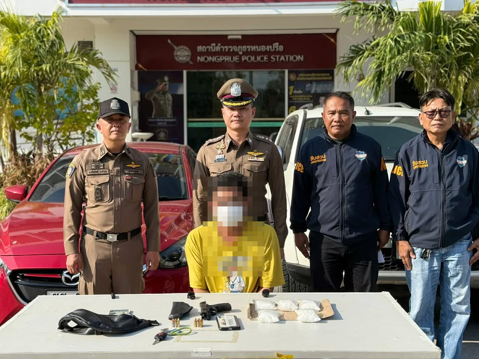 ตำรวจหนองปรือ ทลายแก๊งยานรก รวบเอเย่นต์รายใหญ่ พกปืนขับรถเก๋งส่งไอซ์ ของกลางกว่าครึ่งกิโลกรัม จ.ชลบุรี