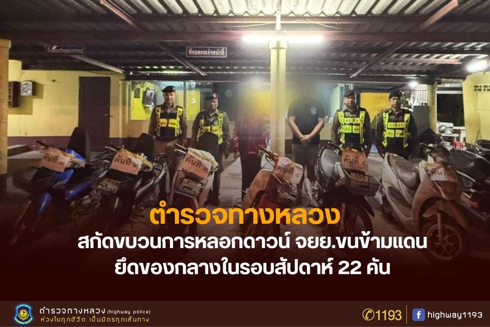 ตำรวจทางหลวง 5 กองกำกับการ 6 กองบังคับการตำรวจทางหลวง สกัดจับรถกระบะตู้ทึบ 1 คัน บนเส้นทางมุ่งหน้าชายแดนจังหวัดมุกดาหาร ตรวจพบรถจักรยานยนต์ 7 คัน ซุกซ่อนอยู่ในรถ ก่อนหลุดออกนอกราชอาณาจักร