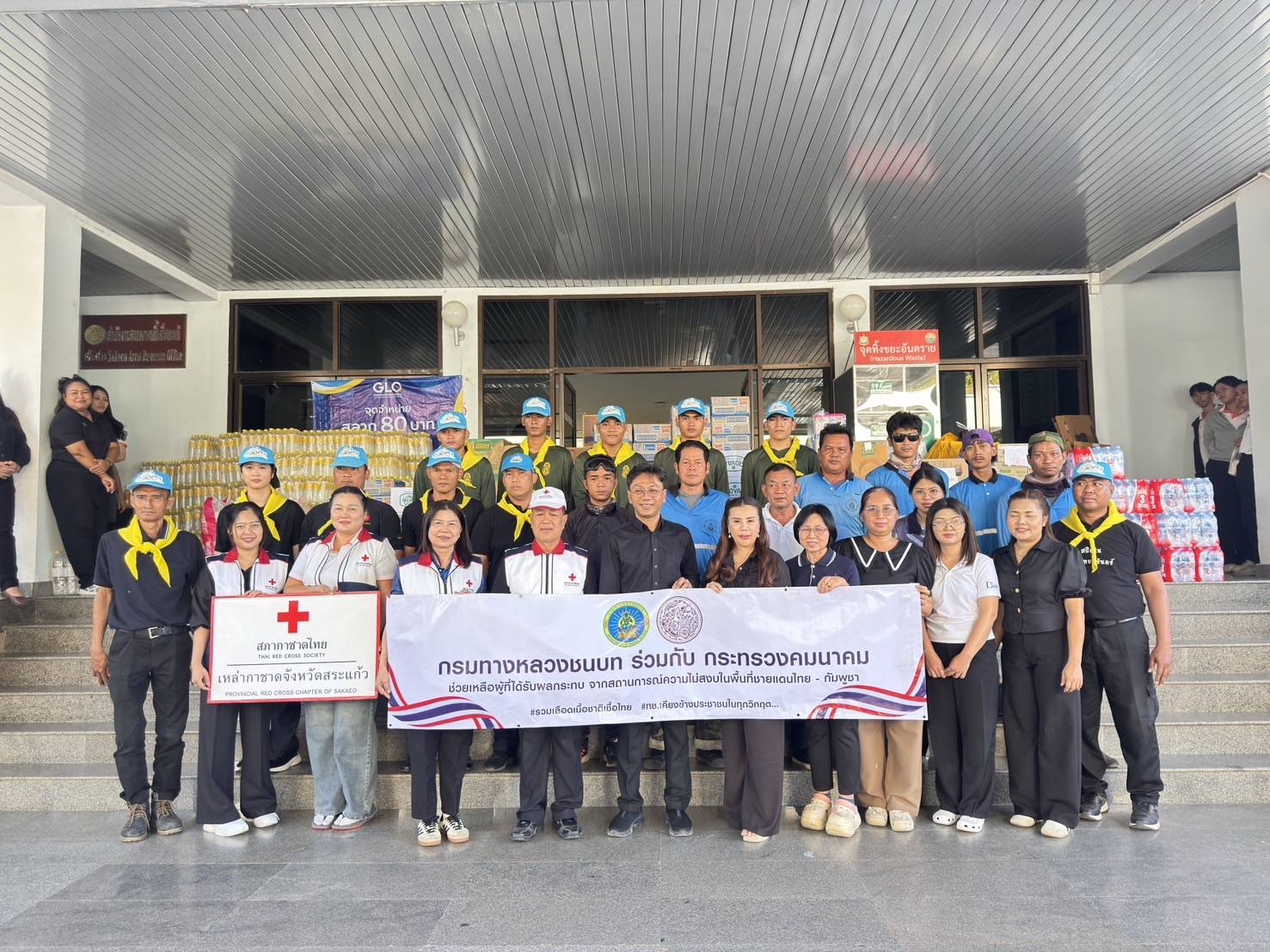 รวมไปถึง ขทช.สระแก้ว ซึ่งได้นำสิ่งของไปส่งมอบให้หน่วยงานในจังหวัดกระจายสู่ผู้รับเช่นเดียวกัน เพื่อบรรเทาความเดือดร้อนและร่วมเป็นกำลังใจจนกว่าสถานการณ์จะกลับเข้าสู่ภาวะปกติ เป็นไปตามนโยบายของนายพิพัฒน์ รัชกิจประการ รองนายกรัฐมนตรีและรัฐมนตรีว่าการกระทรวงคมนาคม ที่ได้กำชับให้ทุกหน่วยงานในสังกัดเข้าบูรณาการร่วมกับจังหวัดและหน่วยงานในพื้นที่ ในการให้ความช่วยเหลือประชาชนอย่างเต็มกำลัง รวดเร็วและตรงจุด