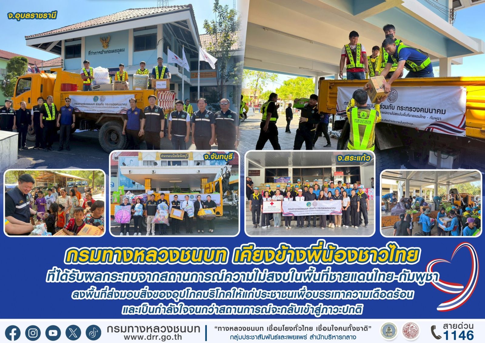 กรมทางหลวงชนบท เคียงข้างพี่น้องชาวไทยที่ได้รับผลกระทบจากสถานการณ์ความไม่สงบในพื้นที่ชายแดนไทย-กัมพูชา ลงพื้นที่ส่งมอบสิ่งของอุปโภคบริโภคให้แก่ประชาชนเพื่อบรรเทาความเดือดร้อนและเป็นกำลังใจจนกว่าสถานการณ์จะกลับเข้าสู่ภาวะปกติ