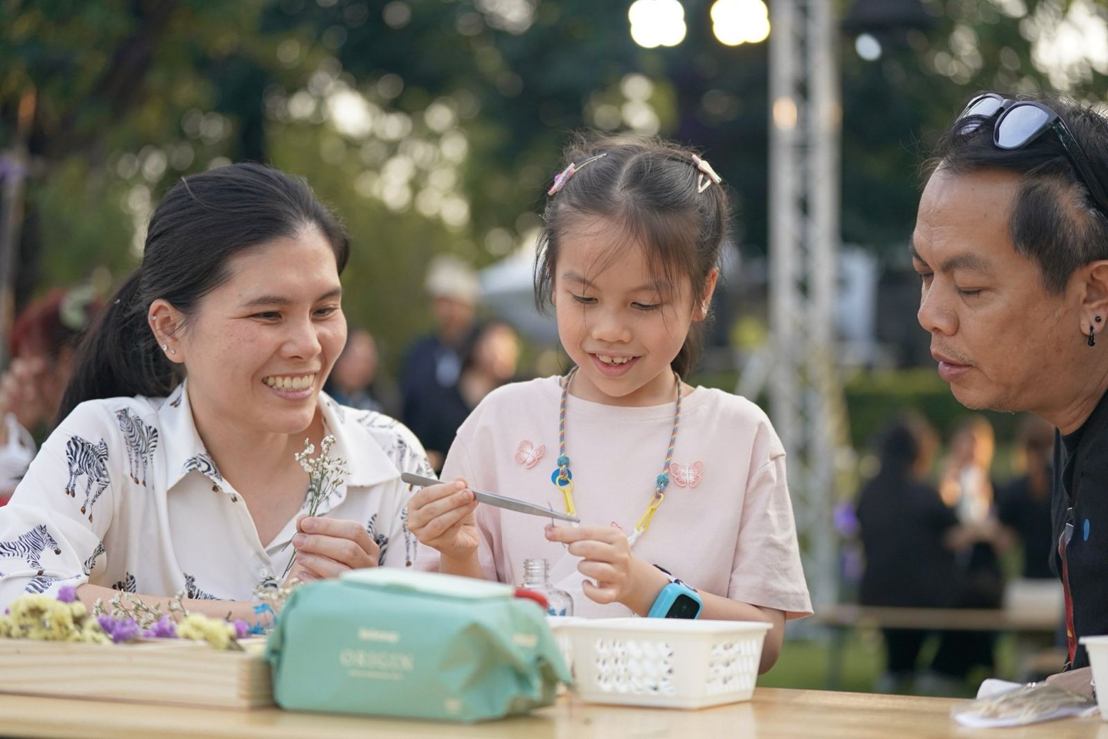 กิจกรรมเวิร์กช็อปของที่ระลึกทำมือ สัมผัสแรงบันดาลใจที่สืบสานจากพระราชปณิธาน ผ่านงานประดิษฐ์ที่ผสานความงดงามของดอกไม้ ผ้าไหมไทย และธรรมชาติอย่างเปี่ยมความหมาย อาทิ กิจกรรมประดิษฐ์น้ำหอมในขวดแบบก้านไม้หอม กิจกรรมประดิษฐ์พวงกุญแจจากผ้าไหมไทย กิจกรรมปลูกต้นไม้ในกระถางอิฐมวลเบา เลือกซื้อผลิตภัณฑ์จากมูลนิธิส่งเสริมศิลปาชีพ ในสมเด็จพระนางเจ้าสิริกิติ์ พระบรมราชินีนาถ พระบรมราชชนนีพันปีหลวง แสดงผลิตภัณฑ์จากภูมิปัญญาท้องถิ่น ที่คัดสรรจากชุมชนและแหล่งผลิตงานฝีมือคุณภาพ สะท้อนคุณค่าของศิลปหัตถกรรมไทยที่ได้รับการยอมรับจากทั่วโลก