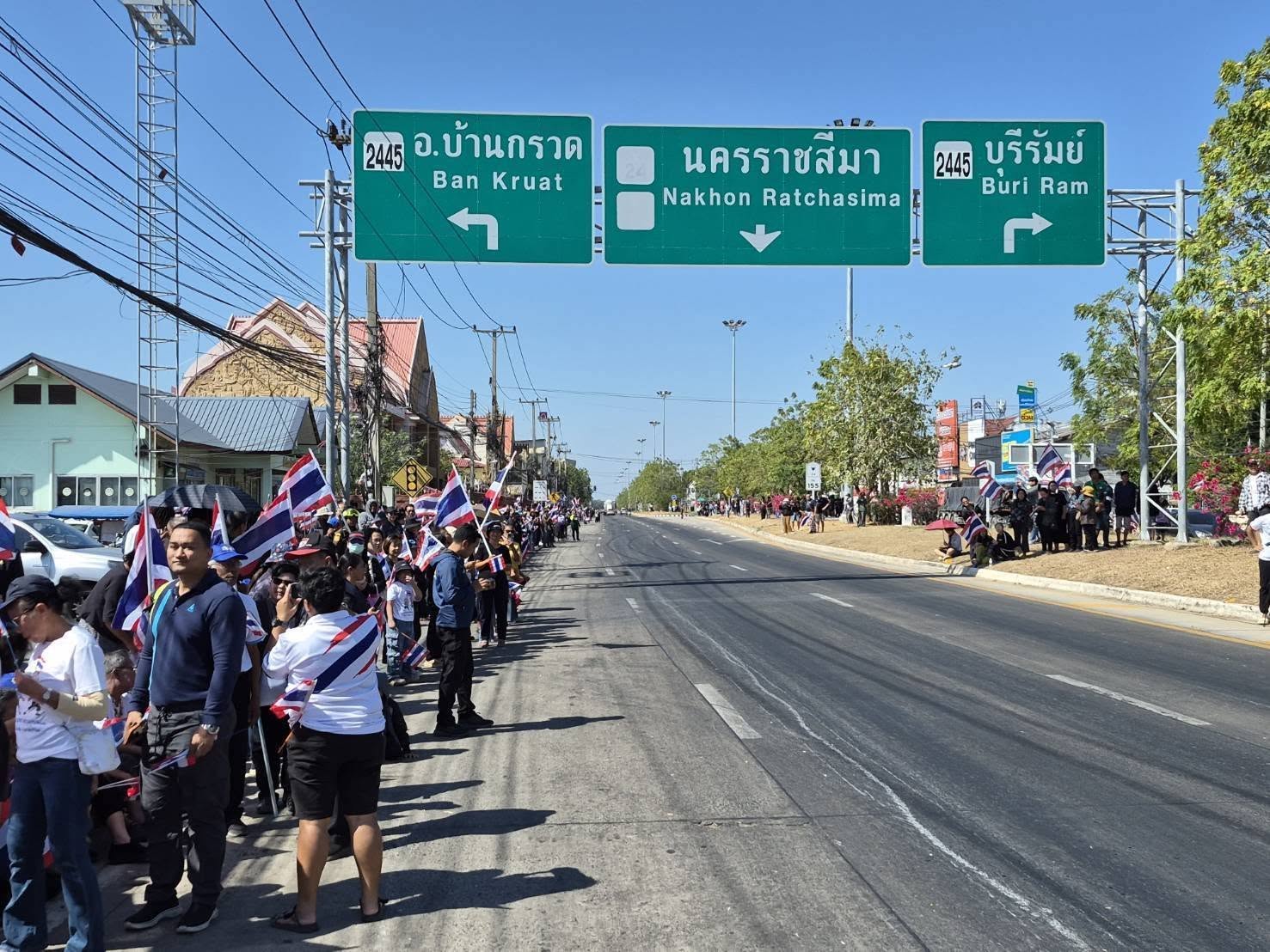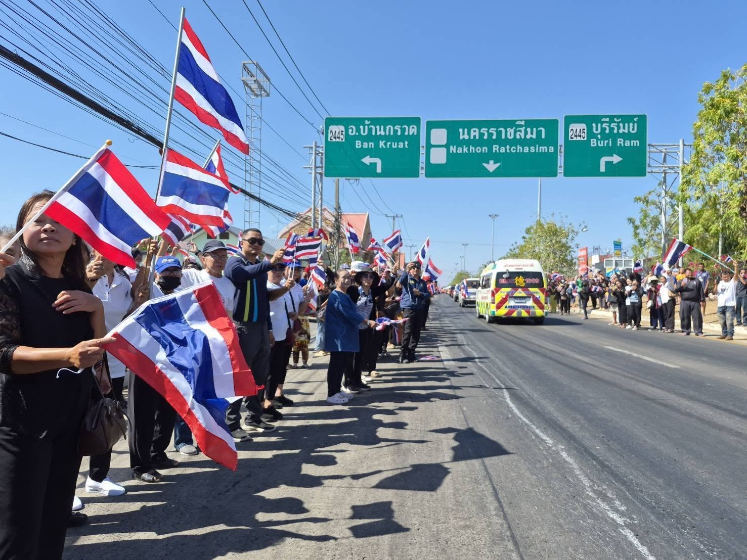 วันนี้ (21 ธ.ค.2568) นายปิยะ ปิจนำ ผู้ว่าราชการจังหวัดบุรีรัมย์ พร้อมด้วย รองผู้บัญชาการมณฑลทหารบกที่ 26 ผู้บังคับการตำรวจภูธรจังหวัดบุรีรัมย์ หัวหน้าส่วนราชการ ข้าราชการ ตลอดทั้งประชาชนชาวอำเภอประโคนชัย และจังหวัดใกล้เคียงเดินทางไปร่วมแสดงความอาลัย และรอรับร่าง จ.ส.อ.สำเริง คลังประโคน หรือ จ่าเริง อายุ 38 ปี ทหารสังกัดค่ายวีรวัฒน์โยธิน กรมทหารราบที่ 23 พัน 3 (ร.23 พัน 3) จังหวัดสุรินทร์ ซึ่งเสียชีวิตจากการปฏิบัติหน้าที่ในเหตุปะทะบริเวณเนิน 350 ใกล้กับปราสาทตาควาย อ.พนมดงรัก จ.สุรินทร์ เมื่อวันที่ 16 ธ.ค.68 ที่ผ่านมา ซึ่งก่อนหน้านี้ไม่สามารถนำร่างลงมาได้เนื่องจากการสู้รบที่รุนแรง โดยขบวนรถเคลื่อนร่างของจ่าสำเริง ออกจากค่ายวีรวัฒน์โยธิน จ.สุรินทร์ เมื่อเวลา 10.00 น. ใช้ถนนหมายเลข 214 ผ่านอำเภอปราสาท เข้าสู่ถนนหมายเลข 24 มุ่งหน้า อ.ประโคนชัย จ.บุรีรัมย์ บ้านเกิดของ จ.ส.อ.สำเริง ไปยัง วัดห้วยปอ ต.ปังกู อ.ประโคนชัย จ.บุรีรัมย์ เวลาประมาณ 12.40 น.ของวันที่ 21 ธ.ค.2568 โดยมีประชาชนจำนวนมากยืนโบกธงชาติไทยตลอดเส้นทาง แสดงความอาลัยและสดุดีความกล้าหาญ ยกย่อง จ.ส.อ.สำเริง เป็น วีรบุรุษทหารกล้าของแผ่นดิน ท่ามกลางบรรยากาศแห่งความโศกเศร้าและความภาคภูมิใจของชาวบ้านในพื้นที่ มีทหารกองเกียรติยศต้อนรับอย่างสมเกียรติ