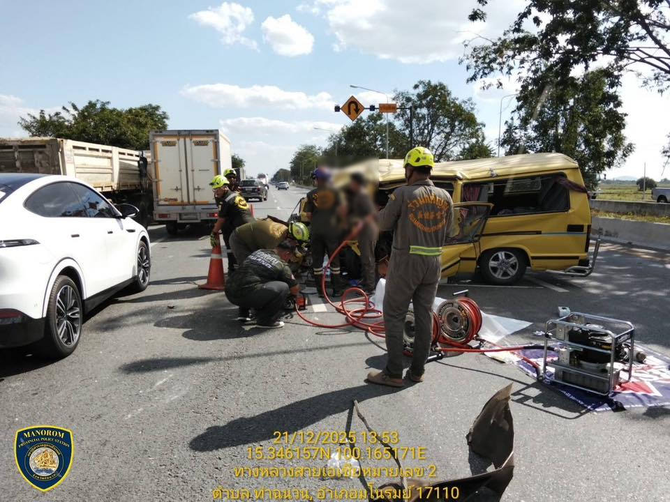 รถตู้ชนกับรถพ่วง กลางถนนสายเอเชีย พบผู้เสียชีวิต 2 ราย จ.ชัยนาท