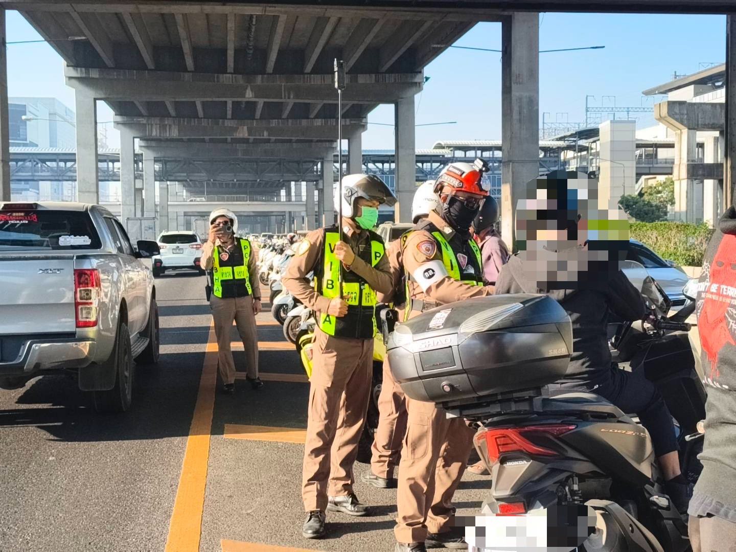 22 ธ.ค.68 เจ้าหน้าที่ตำรวจจราจร สน.วิภาวดี เดินหน้ากวดขันวินัยจราจรอย่างเข้มงวด โดย พ.ต.ท.ดามพวร ทองอิ่ม รอง ผกก.งานศูนย์ควบคุมจราจรวิภาวดีรังสิต/ทางพิเศษ กก.2 บก.จร. พร้อมด้วย พ.ต.ท.ภุชงค์ เม้าทุ่ง สว.จร.นำกำลังเจ้าหน้าที่ตำรวจจราจร ออกกวดขันรถจักรยานยนต์ฝ่าฝืนใช้ ช่องทางหลัก บนถนนวิภาวดีรังสิต ในช่วงเช้าที่ผ่านมา พบผู้กระทำผิด จำนวน 53 ราย เจ้าหน้าที่ได้ดำเนินการออกใบสั่งตามกฎหมาย พร้อมประชาสัมพันธ์และตักเตือนผู้ขับขี่อย่างเคร่งครัด