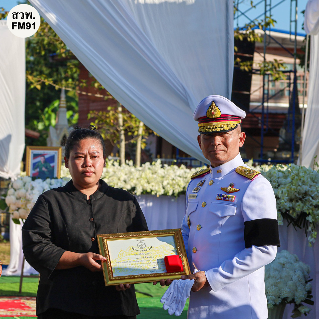 ในการนี้ ที่ปรึกษาพิเศษกองทัพบก ได้มอบธงไตรรงค์ ให้กับครอบครัว เพื่อเป็นเกียรติแก่วงศ์ตระกูลและแสดงถึงความหาญกล้าในการปฏิบัติหน้าที่ในการรักษาผืนแผ่นดินไทย พร้อมทั้งมอบเงินพระราชทาน, เงินบำรุงขวัญ, เงินสินไหมทดแทนในการประกันชีวิตของกองทัพบก (ภัยสงคราม), เงินช่วยเหลือและเงินบำเหน็จตกทอดให้กับทายาท ตลอดจนกองทัพบกได้ดูแลสิทธิและเงินช่วยเหลือตามสิทธิของทางราชการและภาคส่วนต่างๆ พร้อมกับจะให้ความช่วยเหลือครอบครัวในด้านอื่นๆ ต่อไป