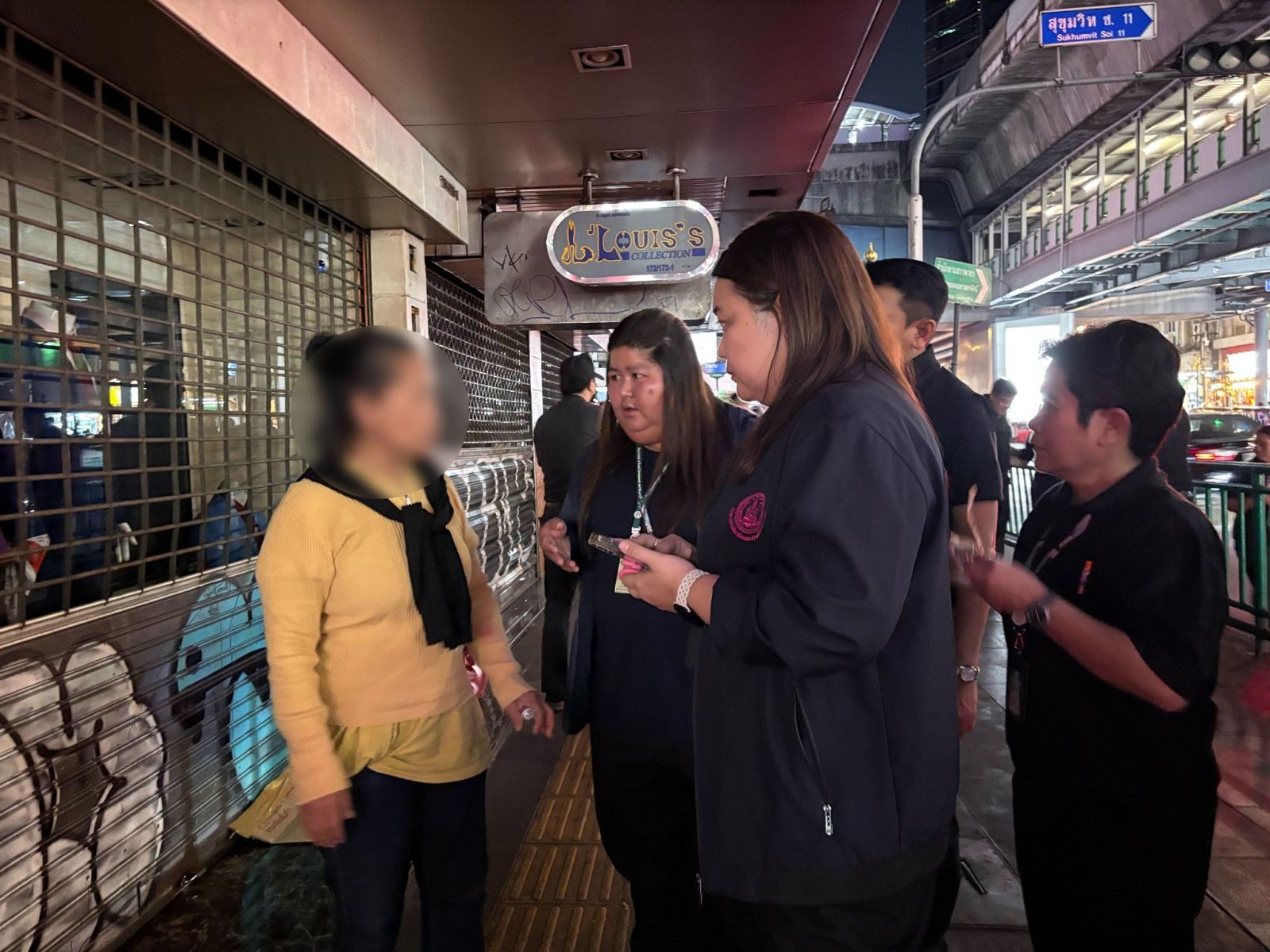 จากการสอบถาม พบว่ามีทั้งผู้ที่ประสงค์ขอรับความช่วยเหลือและผู้ที่ไม่ประสงค์ขอรับความช่วยเหลือใด ๆ ในกรณีของผู้ที่ไม่ประสงค์ขอรับการช่วยเหลือนั้น เจ้าหน้าที่ได้ดำเนินการตามพระราชบัญญัติคุ้มครองคนไร้ที่พึ่ง พ.ศ. 2557 ซึ่งกำหนดให้การให้ความช่วยเหลือต้องเป็นไปด้วยความสมัครใจ อย่างไรก็ตาม เจ้าหน้าที่ได้ทำการว่ากล่าวตักเตือนและขอความร่วมมือไม่ให้ใช้พื้นที่สาธารณะเป็นที่พักอาศัย พร้อมดำเนินการผลักดันออกจากพื้นที่ เพื่อความเป็นระเบียบเรียบร้อยและความปลอดภัยของประชาชนผู้ใช้ทางเท้าและพื้นที่สาธารณะในย่านสุขุมวิท