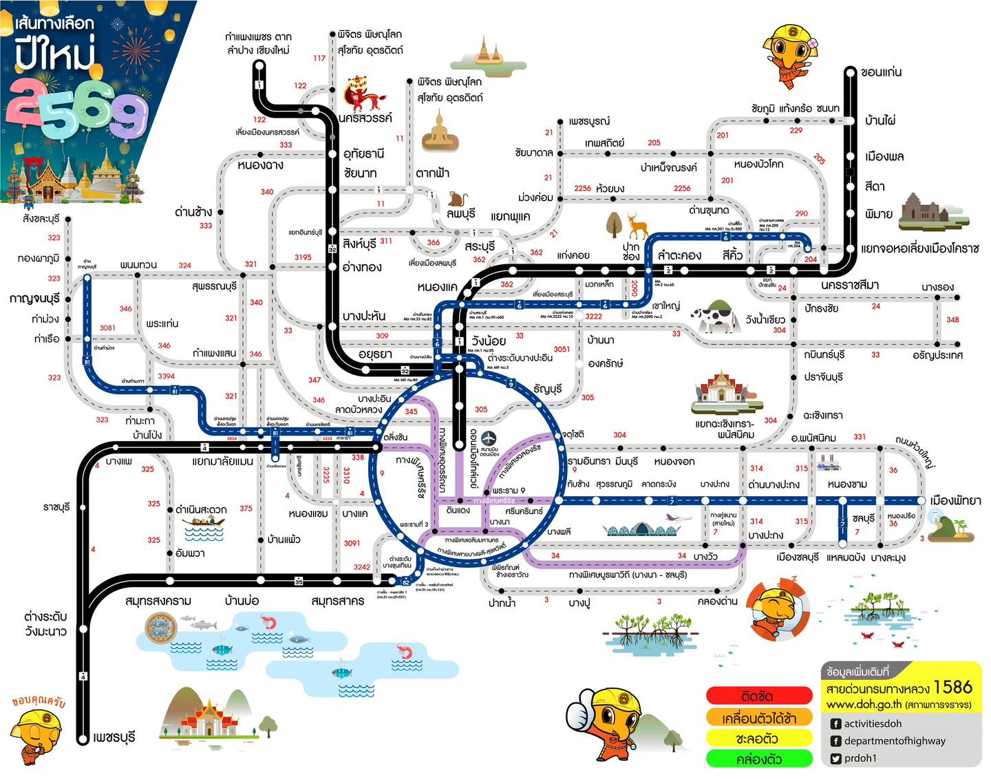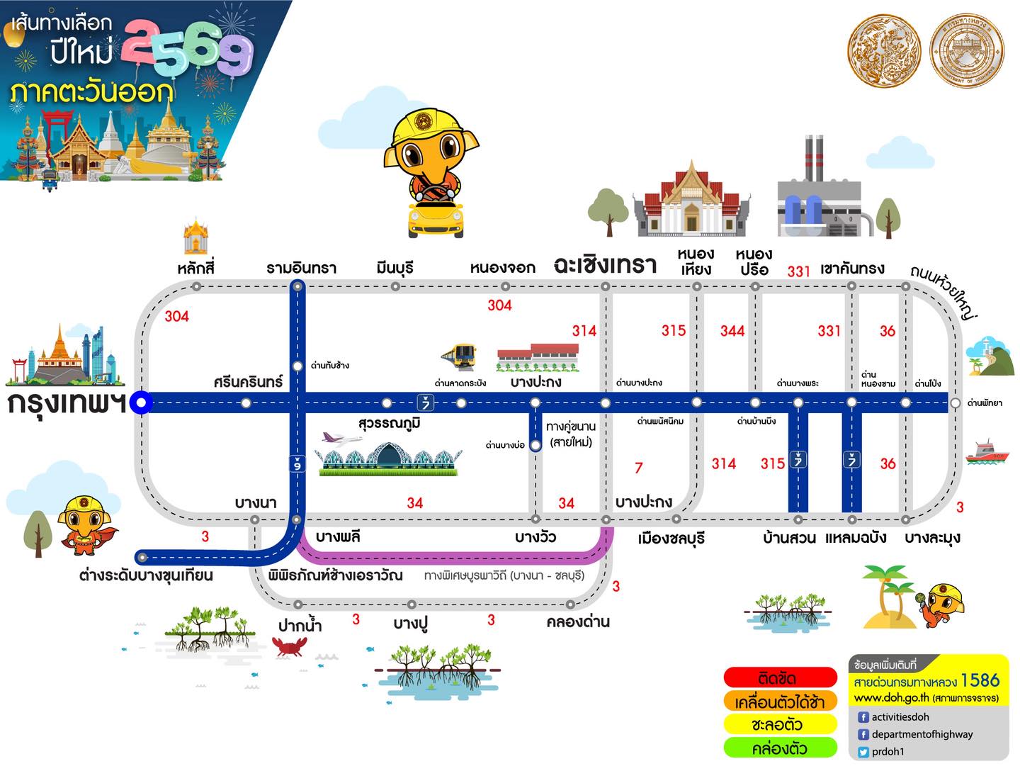 กรมทางหลวง โดยสำนักอำนวยความปลอดภัย ได้แนะนำเส้นทางเลือกให้กับประชาชนในช่วงเทศกาลปีใหม่ระหว่างวันที่ 26 ธันวาคม 2568 – 5 มกราคม 2569 เพื่อเป็นการอำนวยความสะดวกแก่