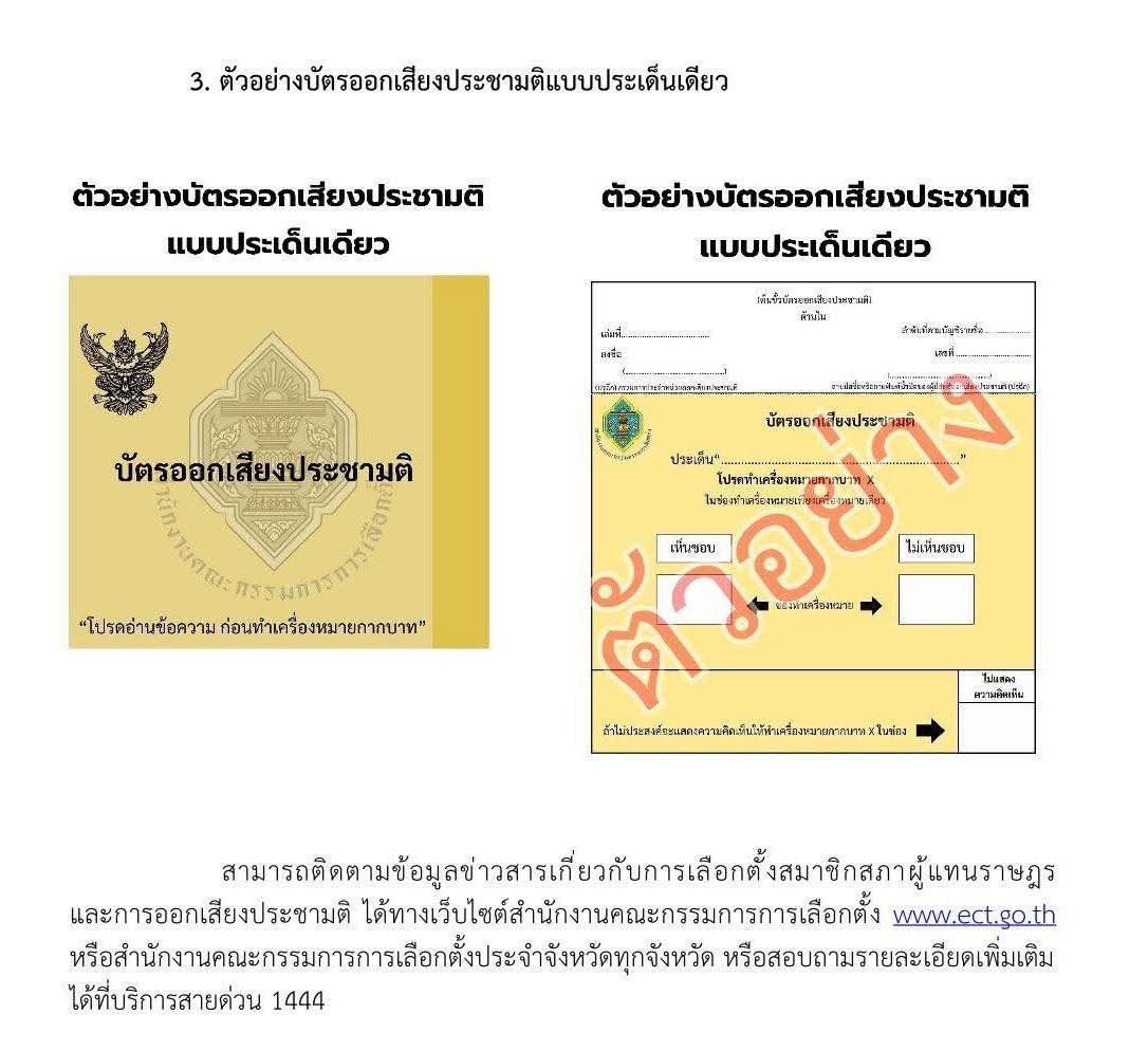 วันนี้ (27 ธ.ค. 68) สำนักงานคณะกรรมการการเลือกตั้ง (กกต.) เผยแพร่ตัวอย่างบัตรเลือกตั้งสมาชิกสภาผู้แทนราษฎร (สส.) แบบแบ่งเขตเลือกตั้ง , แบบบัญชีรายชื่อ และบัตรออกเสียงประชามติ ซึ่งจะมีการเลือกตั้งพร้อมกันทั่วประเทศ วันที่ 8 กุมภาพันธ์ 2569 และออกเสียงในบัตรออกเสียงประชามติด้วย ส่วนการเลือกตั้งล่วงหน้าจะจัดขึ้นในวันที่ 1 กุมภาพันธ์ 2569 ซึ่งคนที่ลงทะเบียนเลือกตั้งล่วงหน้า จะต้องลงทะเบียนเพื่อออกเสียงประชามติในวันที่ 8 กุมภาพันธ์ 2569 อีกครั้งหนึ่ง