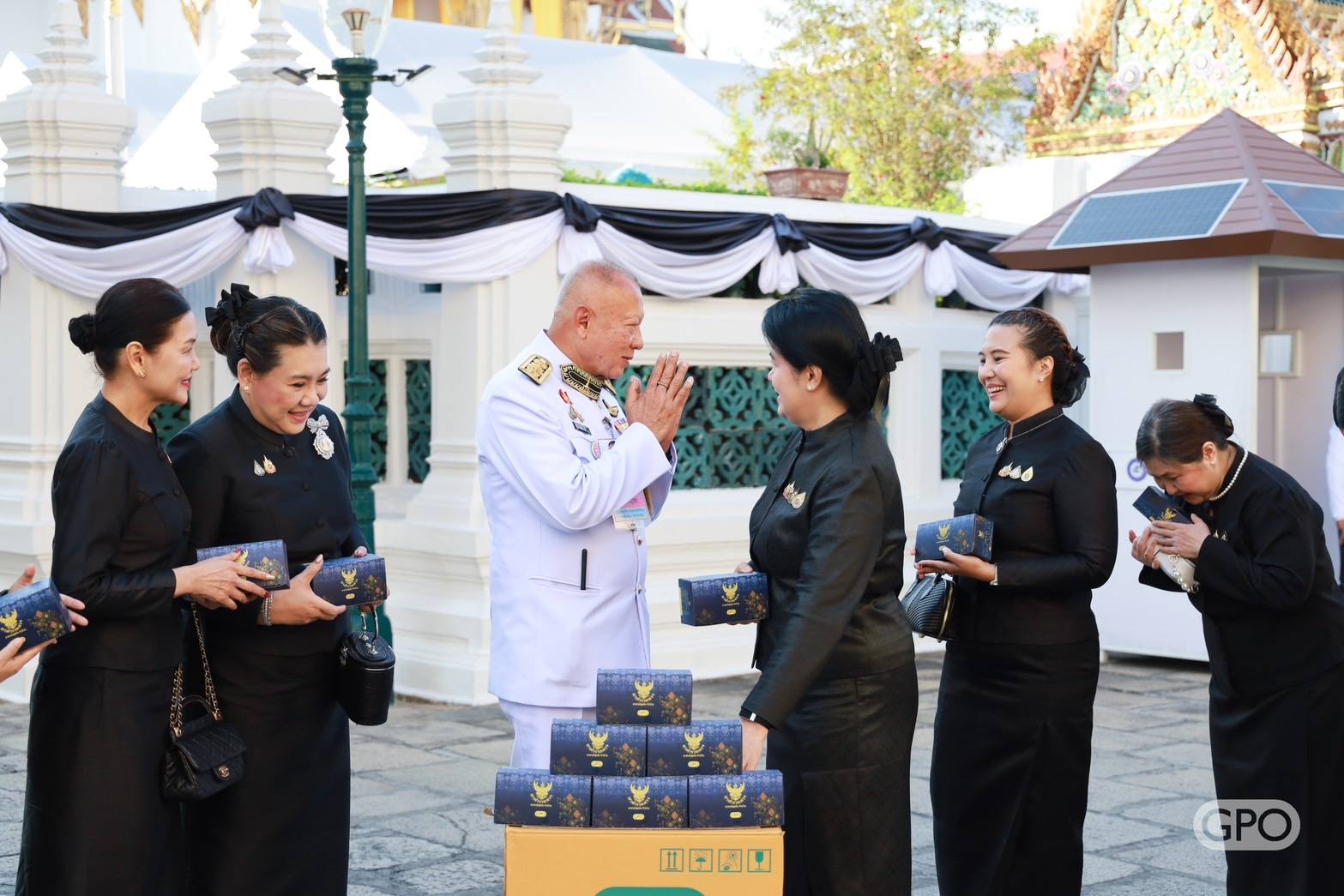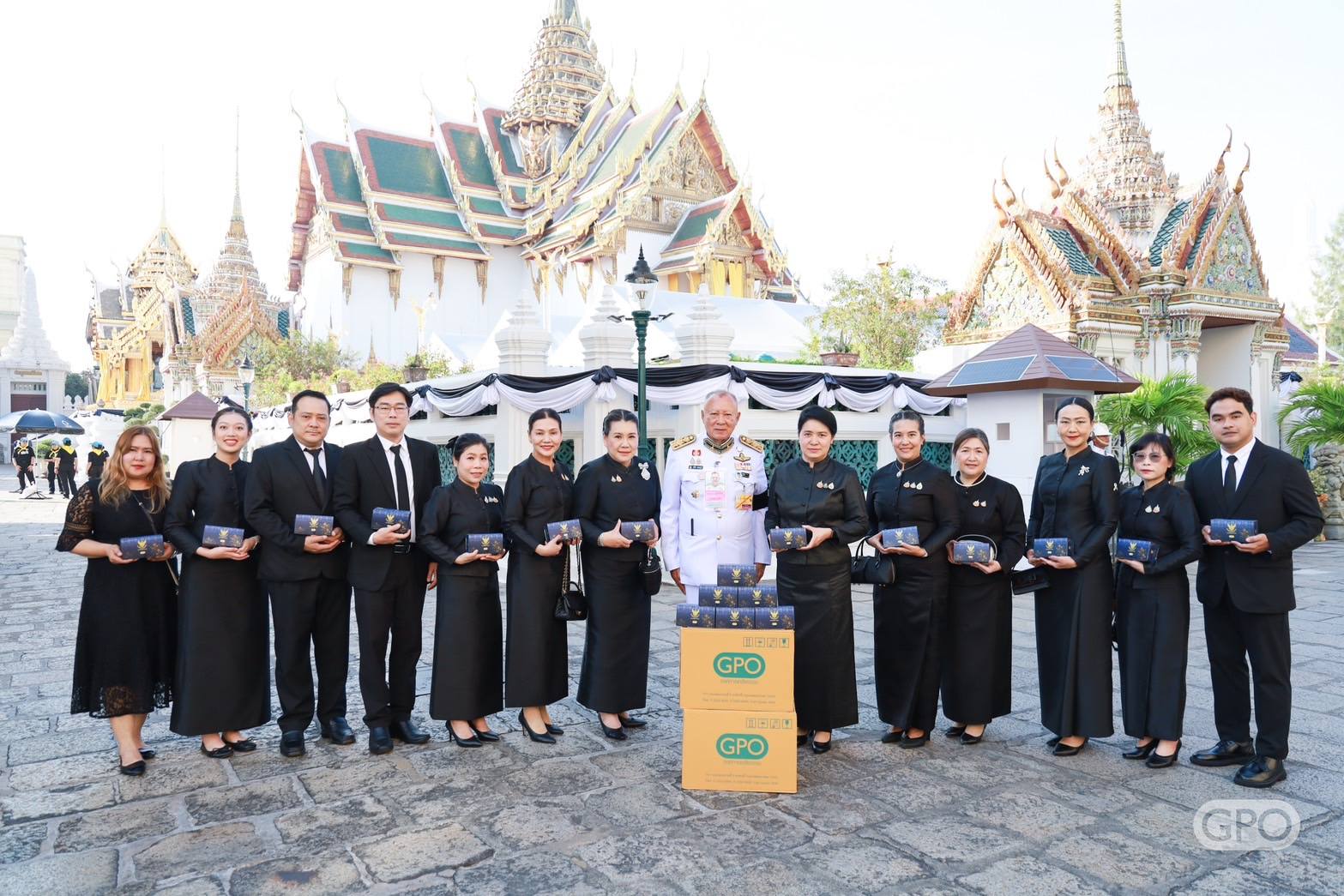 องค์การเภสัชกรรม (GPO) ร่วมแสดงความจงรักภักดี สำนึกในพระมหากรุณาธิคุณอย่างหาที่สุดมิได้ สำหรับ ยาตำราหลวง 3,000 ชุด มอบให้กับสำนักพระราชวัง ประกอบด้วย ยาเม็ดพาราเซตามอล, ผงน้ำตาลเกลือแร่, ยาเม็ดแก้แพ้ ลดน้ำมูกคลอร์เฟนิรามีน, ยาธาตุน้ำแดง, น้ำยาโพวิโดน-ไอโอดีน, พลาสเตอร์ยา และสำลี เพื่อใช้ในการดูแลและอำนวยความสะดวกด้านการแพทย์แก่เจ้าหน้าที่ที่ปฏิบัติหน้าที่ และประชาชนที่เดินทางมาร่วมถวายบังคมพระบรมศพ สมเด็จพระนางเจ้าสิริกิติ์ พระบรมราชินีนาถ พระบรมราชชนนีพันปีหลวง ณ พระที่นั่งดุสิตมหาปราสาทในพระบรมมหาราชวัง และใช้ในกิจกรรมของสำนักพระราชวัง ทั้งนี้องค์การเภสัชกรรมมีความพร้อมในการสนับสนุนภารกิจของหน่วยงานภาครัฐและสำนักพระราชวังอย่างต่อเนื่อง เพื่อประโยชน์สุขของประชาชน และการดำเนินกิจกรรมสำคัญของชาติด้วยความสมพระเกียรติ