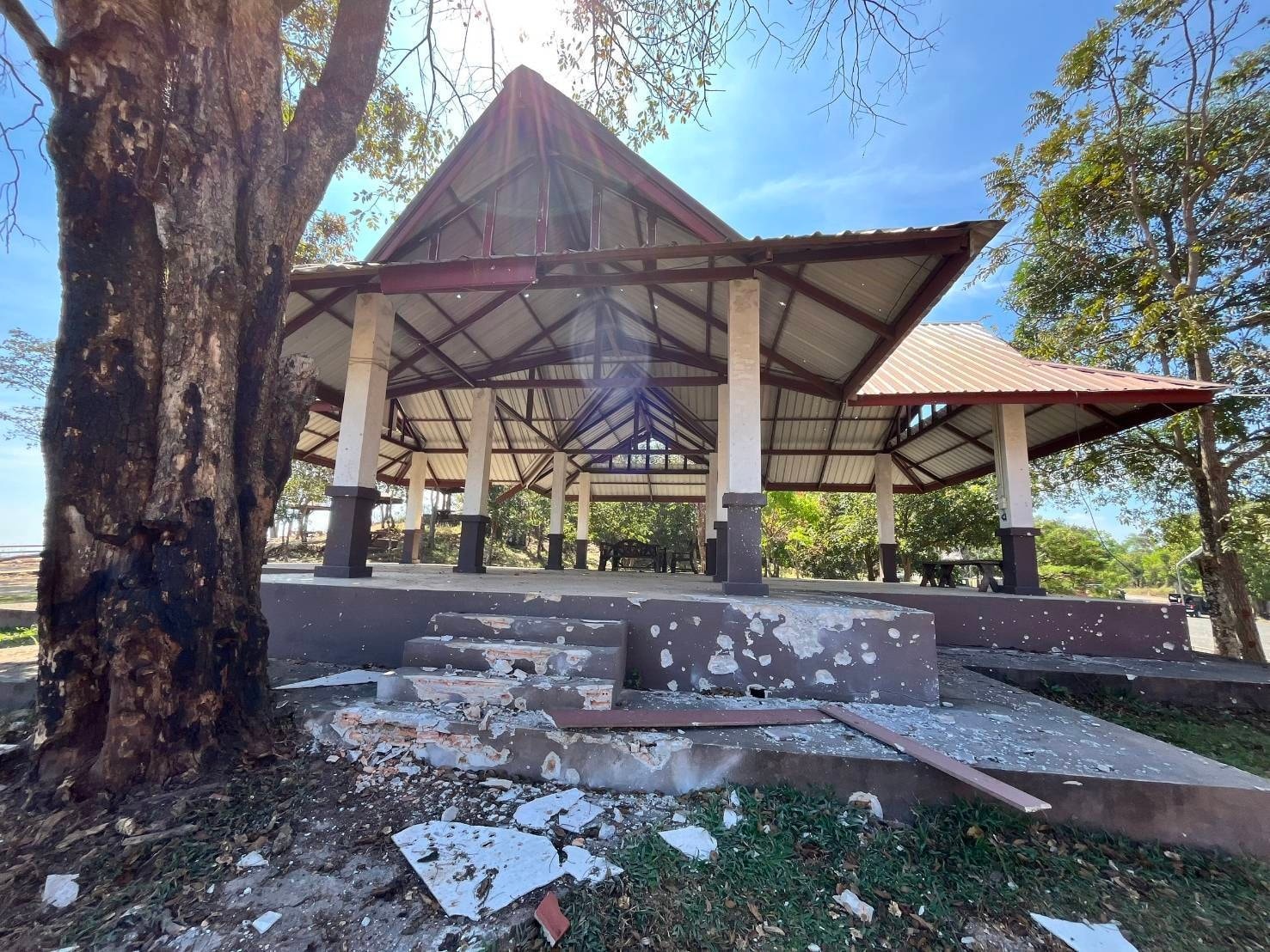 อช.เขาพระวิหาร รายงานความเสียหายจากสถานการณ์สู้รบไทย-กัมพูชา พบที่ทำการฯ และสถานที่ให้บริการเสียหายจำนวนมาก ยังมีระเบิดหลายจุด แจ้งฝ่ายความมั่นคงเร่งเก็บกู้