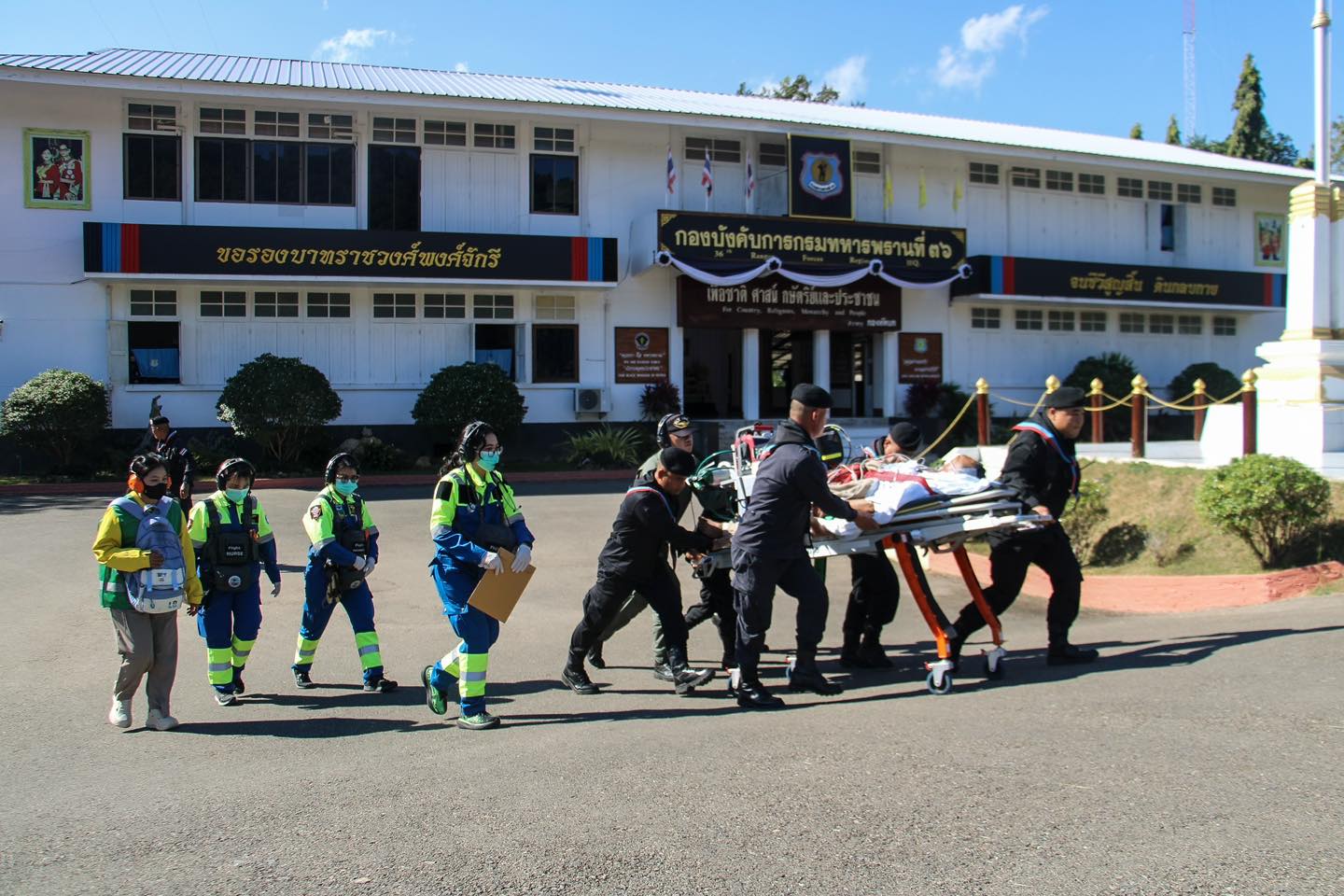 กองกำลังผาเมือง โดย ชุดปฏิบัติการบินทหารบก กองกำลังผาเมือง จัดเฮลิคอปเตอร์ใช้งานทั่วไป แบบ 145 จำนวน 1 เครื่อง สนับสนุนสถาบันการแพทย์ฉุกเฉินแห่งชาติ (สพฉ.) โดยทีม SKY DOCTOR โรงพยาบาลนครพิงค์ รับผู้ป่วยฉุกเฉินทางอากาศ เพศชาย อายุ 52 ปี มีภาวะเลือดออกในช่องเยื่อหุ้มหัวใจร่วมกับภาวะน้ำรัดเยื่อหุ้มหัวใจ จาก โรงพยาบาลแม่สะเรียง อำเภอแม่สะเรียง จังหวัดแม่ฮ่องสอน เพื่อเข้ารับการรักษาพยาบาลต่อที่ โรงพยาบาลมหาราชนครเชียงใหม่ อำเภอเมือง จังหวัดเชียงใหม่ ใช้เวลาบิน ประมาณ 40 นาที (ถ้าลำเลียงทางรถยนต์จะใช้เวลาประมาณ 4 - 5 ชั่วโมง) ผู้ป่วยถึงมือแพทย์อย่างปลอดภัย
