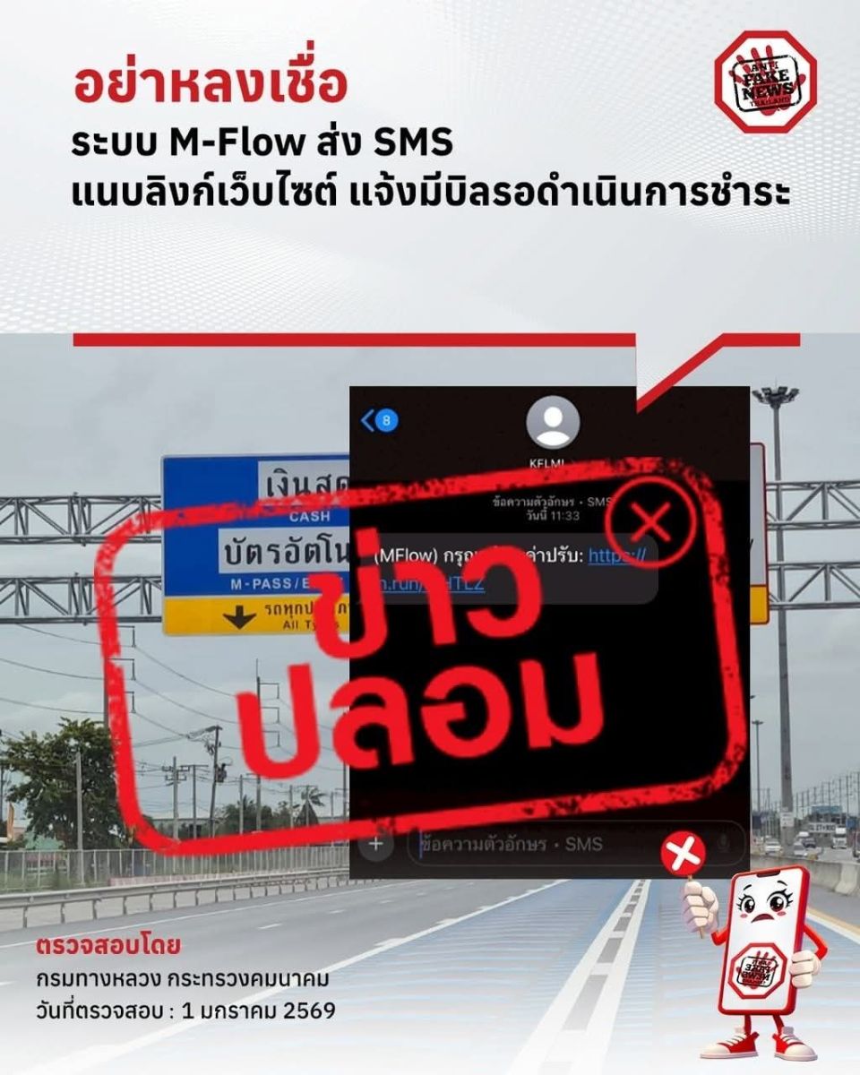 ห้ามกดเด็ดขาด! ข้อความ SMS ที่แจ้งว่า มีบิล M-Flow รอดำเนินการพร้อมแนบลิงก์นั้น เป็นของปลอมจากมิจฉาชีพ ระบบ M-Flow ไม่มีนโยบายส่ง SMS แนบลิงก์ให้ประชาชนผู้ใช้งานแต่อย่างใด
