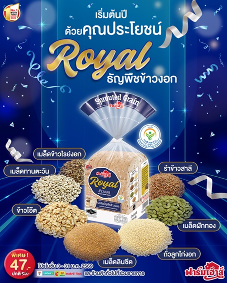 ต้อนรับปีใหม่ด้วยความคุ้ม! เริ่มต้นปี ด้วยคุณประโยชน์ กับรอยัลธัญพืชผสมข้าวงอก ขนมปังคุณภาพที่สายรักสุขภาพต้องมีติดบ้าน! อร่อยนุ่ม ทานง่าย พร้อมคุณประโยชน์จากข้าวงอก และธัญพืชแบบจัดเต็ม ปิ้งกรอบนอกนุ่มในก็อร่อยน้าา