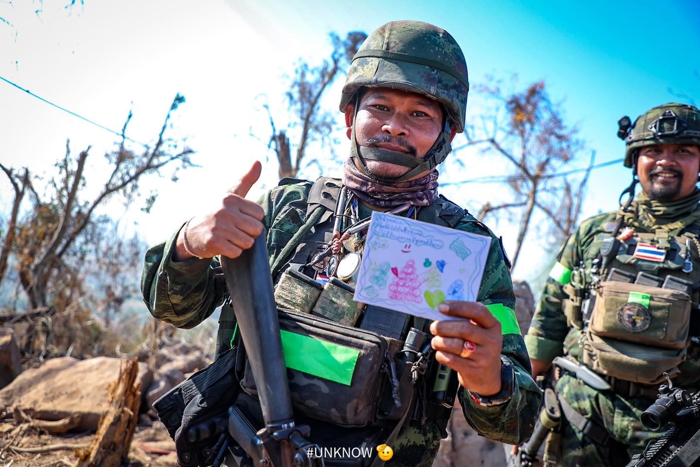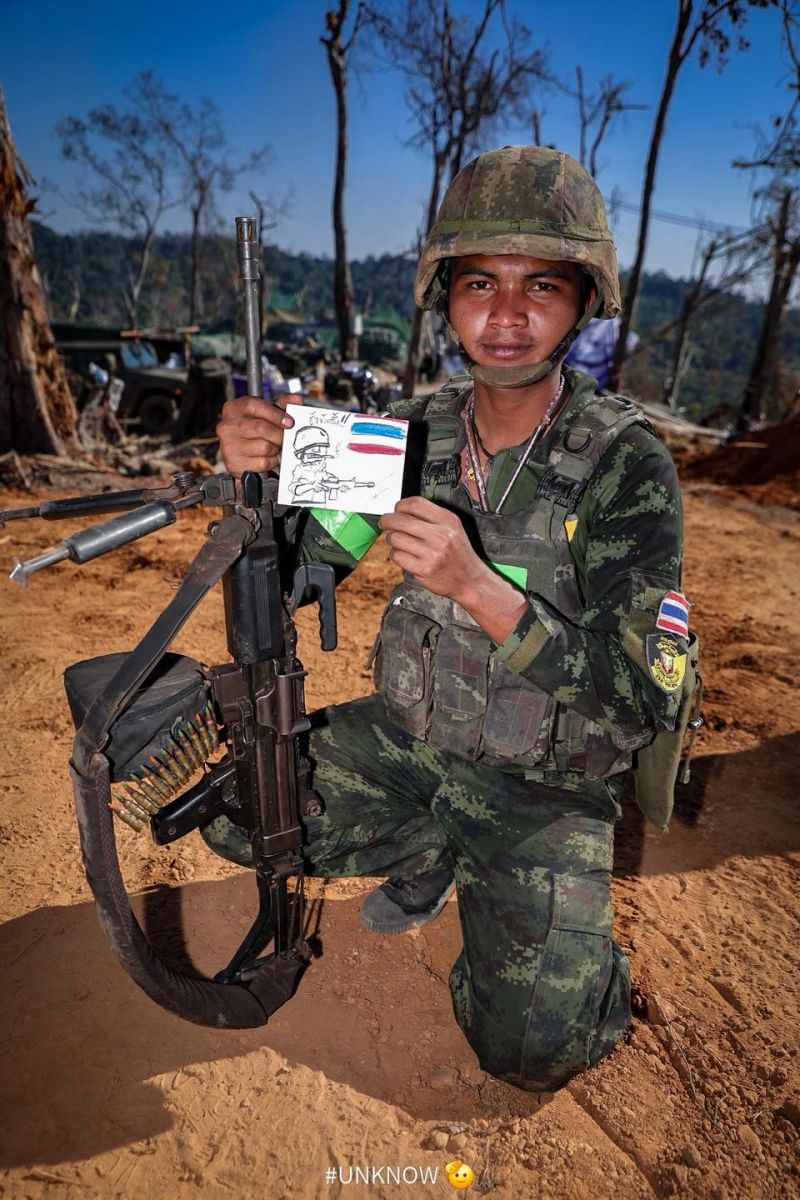 วันที่ 1 มกราคม 2569 นักเรียนจากโรงเรียนวีรวัฒน์โยธิน อ.เมือง จ.สุรินทร์ ได้ร่วมกันเขียนโปสการ์ด และวาดภาพระบายสี เพื่อส่งมอบเป็นกำลังใจให้แก่กองร้อยทหารราบ หน่วยต้นสังกัดของ จ.ส.อ.สำเริง คลังประโคน และ พลฯ ภานุพัฒน์ เสาร์สา ปฏิบัติการในสมรภูมิเนิน 350 ปราสาทตาควาย สร้างขวัญกำลังใจในการปฏิบัติหน้าที่ปกป้องอธิปไตยของชาติต่อไป
