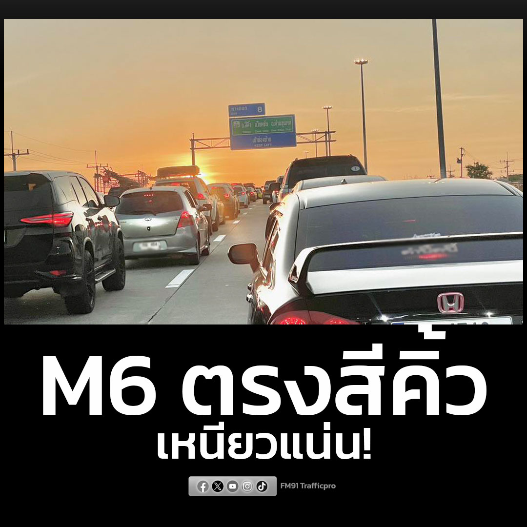 เหนียวแน่น เส้นทาง M6 ขาเข้า ช่วงสีคิ้ว เป็นจุดหนึ่งที่รถบรรจบกันหลายด้านคือ