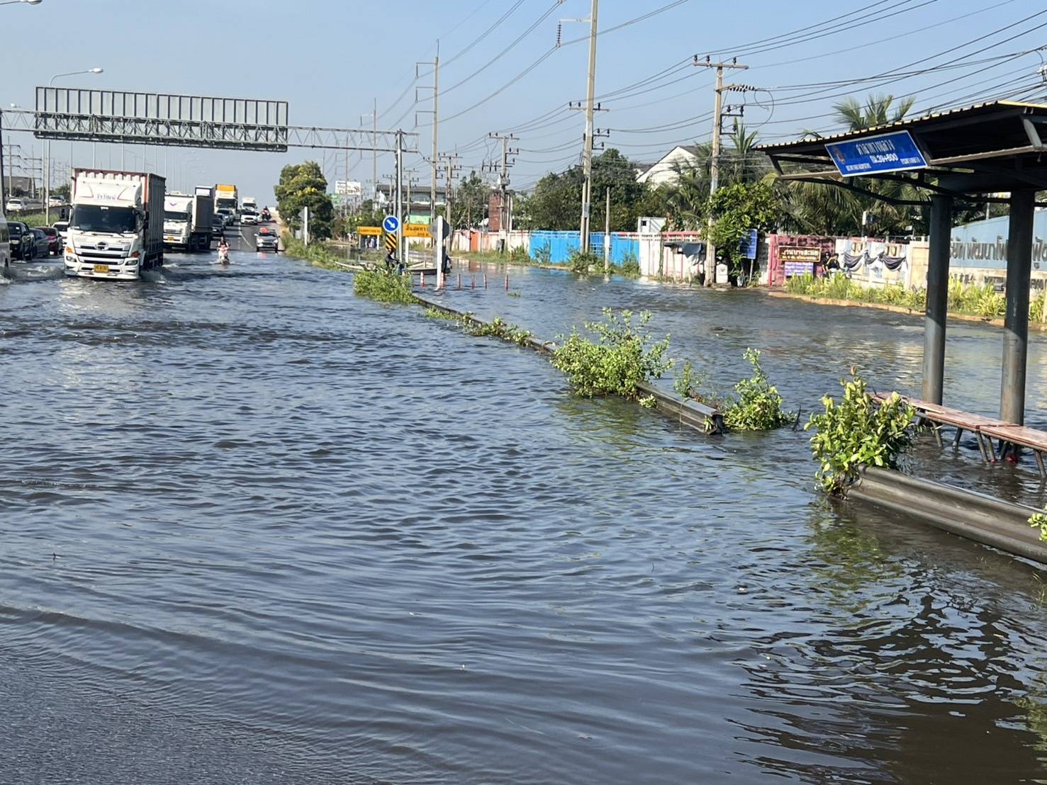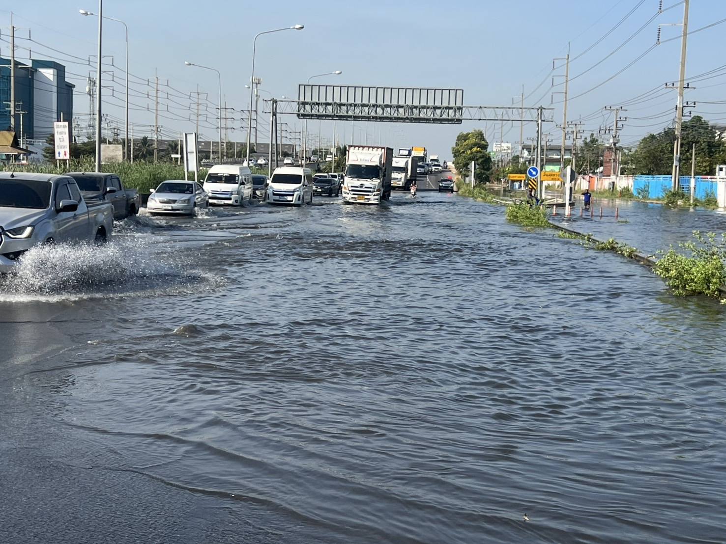สภาพการจราจรตอนนี้ ขาเข้า ปริมาณรถน้อย แต่มีชะลอตัว เนื่องจากมีน้ำทะเลหนุนบนผิวการจราจร สูงประมาณ 5-20 ซม. เป็นระยะทางสั้นๆ ประมาณ 10-20 เมตร มีท้ายแถวสะสมประมาณ 500 เมตร