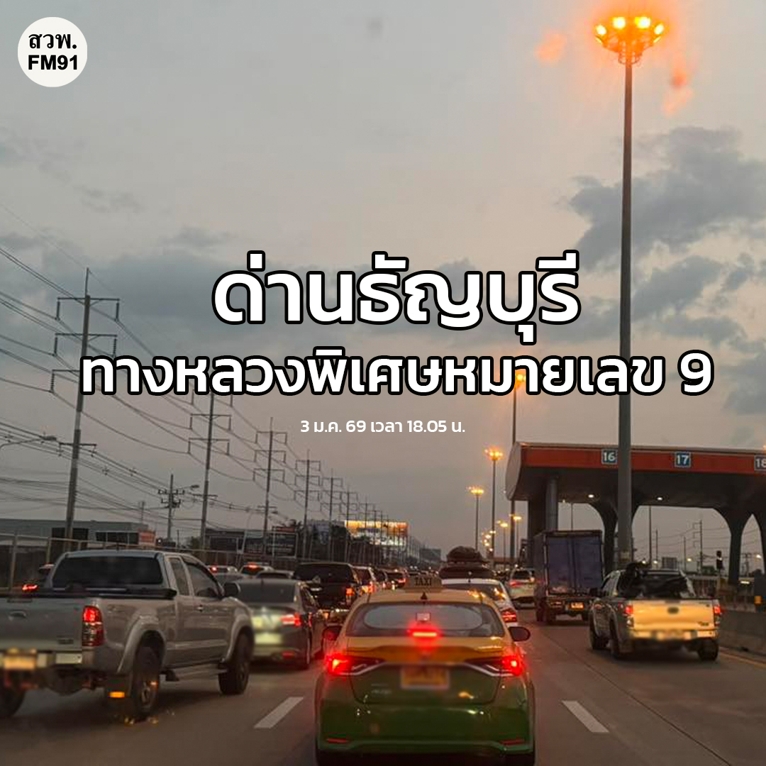 3 ม.ค. 69 เวลา 17.35 น. ทางหลวงพิเศษหมายเลข 9 ขาเข้า (บางปะอิน-บางพลี) เข้าด่านธัญบุรี ท้ายสะสม 5 กม. กลับกัน ไม่มีปัญหา