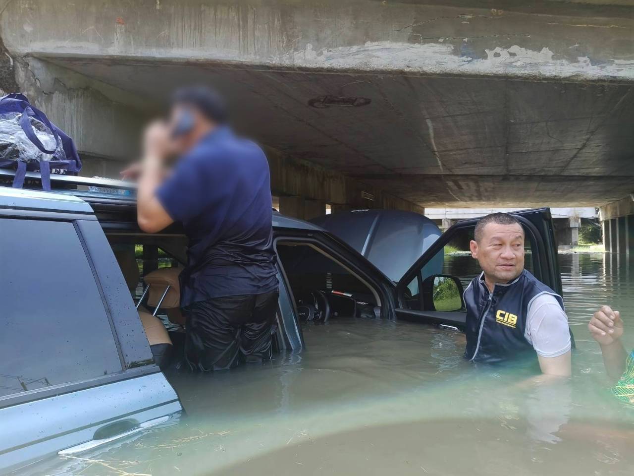 ในขณะเกิดเหตุ ระดับน้ำในบริเวณดังกล่าวยังอยู่ในระดับสูง เนื่องจากเป็นช่วงน้ำทะเลหนุน ทำให้รถตู้คันดังกล่าวถูกน้ำท่วมบางส่วน และมีผู้โดยสารติดอยู่ภายในรถ เจ้าหน้าที่ตำรวจทางหลวงร่วมกับอาสาจราจรทางหลวง ได้เร่งเข้าให้ความช่วยเหลืออย่างทันท่วงที โดยสามารถนำผู้ประสบเหตุและทรัพย์สินมีค่าออกมาจากตัวรถได้อย่างปลอดภัย ท่ามกลางสภาพแวดล้อมที่มีความเสี่ยงจากระดับน้ำที่เพิ่มสูงภายหลังการช่วยเหลือ เจ้าหน้าที่ได้ประสานญาติของผู้ประสบเหตุเพื่อเดินทางมารับกลับเข้ากรุงเทพมหานครเป็นที่เรียบร้อย ส่วนรถตู้ซึ่งเป็นระบบไฟฟ้า จำเป็นต้องรอให้บริษัทประกันภัยจัดส่งรถยกเข้ามาดำเนินการลากขึ้นจากน้ำ เพื่อป้องกันความเสียหายและอันตรายที่อาจเกิดขึ้นจากกระแสไฟฟ้า