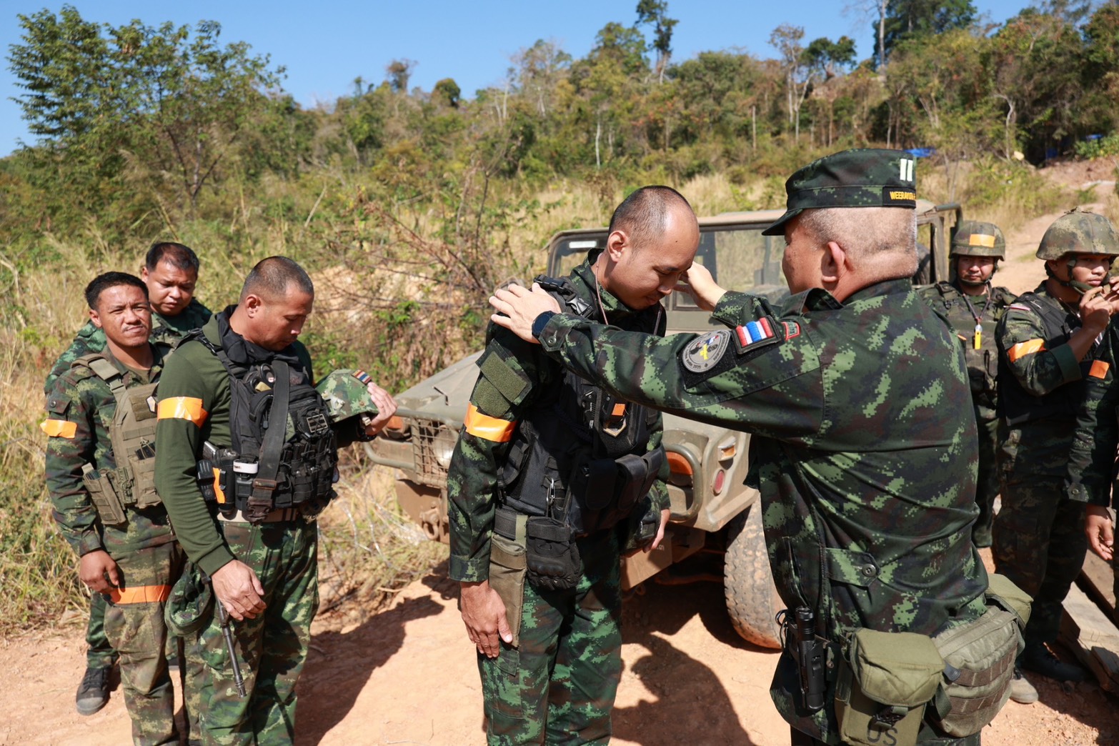 ในขณะคล้องตะกรุด แม่ทัพภาคที่ 2 ยังสังเกตเห็นบาดแผลบริเวณศีรษะของกำลังพลนายหนึ่ง จึงหยุดสอบถามด้วยความห่วงใยทันที สะท้อนให้เห็นถึงความใส่ใจในทุกรายละเอียดของผู้บังคับบัญชา ที่ไม่มองลูกน้องเป็นเพียงกำลังรบ แต่คือชีวิต คือพี่น้องร่วมแนวหน้า ที่ต้องดูแลกันอย่างแท้จริง