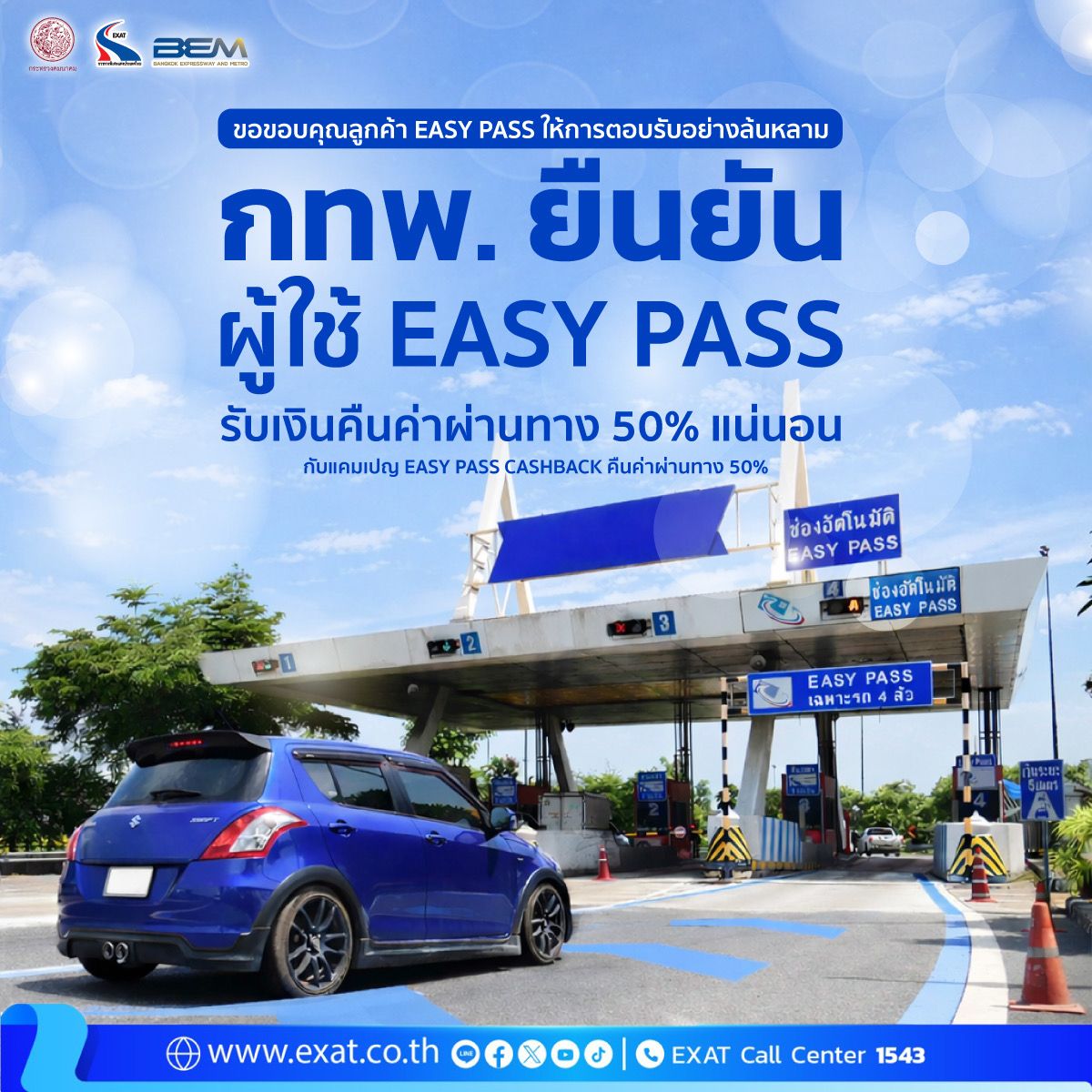 ขอบคุณผู้ใช้ Easy Pass ที่ร่วมแคมเปญทุกเสียงตอบรับคือแรงผลักดันให้เราพัฒนาบริการให้ดียิ่งขึ้นเพื่อให้ทุกการเดินทางของคุณ สะดวก รวดเร็ว และคุ้มค่ากว่าเดิม