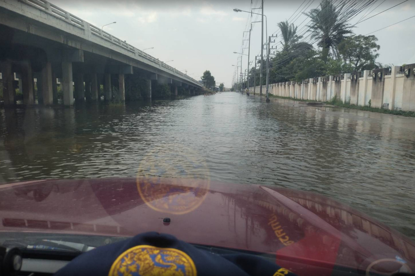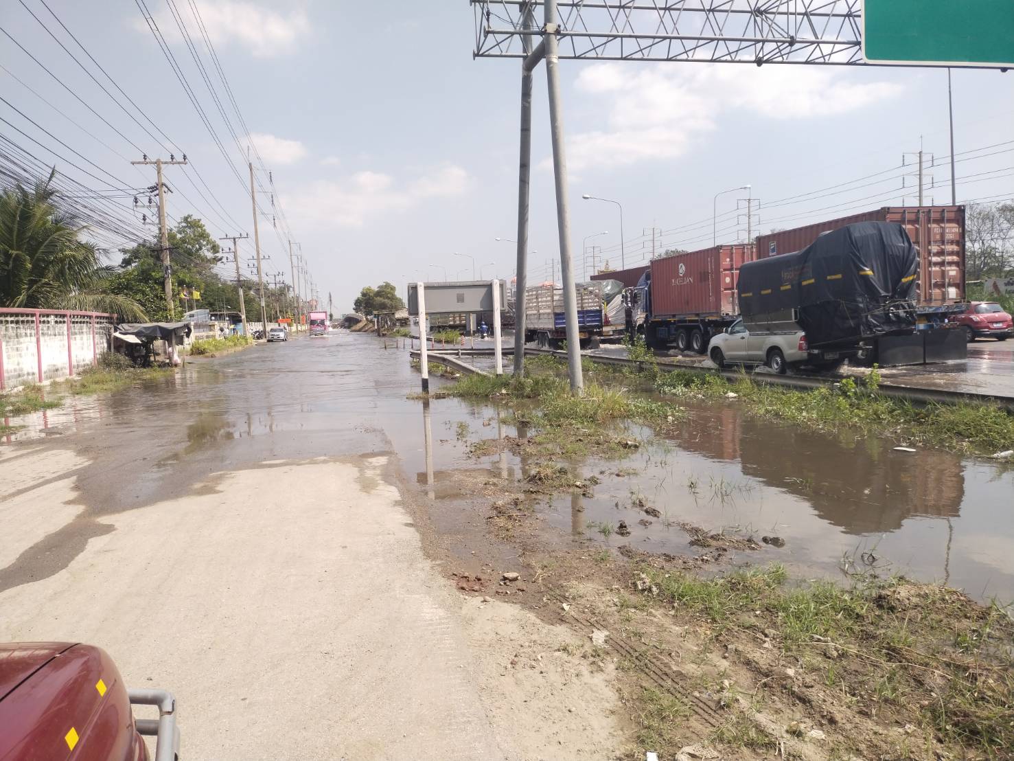 เริ่มแล้ว! ถนนพระราม 2 ขาเข้า เชิงทางขึ้นสะพานข้ามคลองตาขำ ก่อนถึงหน้าดูโฮม มหาชัย น้ำหนุน เริ่มไหลท่วมผิวการจราจรแล้ว จุดกลับรถน้ำสูงใช้การไม่ได้ แนะเลี่ยง ตอนนี้รถติดขัดมาก #รายงานจราจร #รถติด #น้ำหนุน #FM91