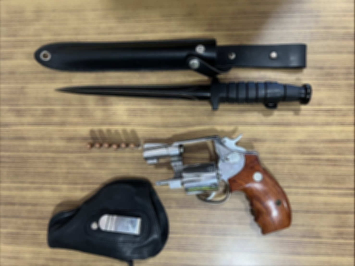 จับกุม นายออ (นามสมมุติ) อายุ 39 ปี พร้อมของกลาง ปืนยี่ห้อ Smith & Wesson .38 พร้อมกระสุน 6 นัด มีด 1 เล่มจับกุมได้บริเวณถนนวิภาวดีรังสิต ขาเข้า หน้าป้ายรถเมล์ศูนย์นิสสัน แขวงลาดยาว เขตจตุจักร กทม.