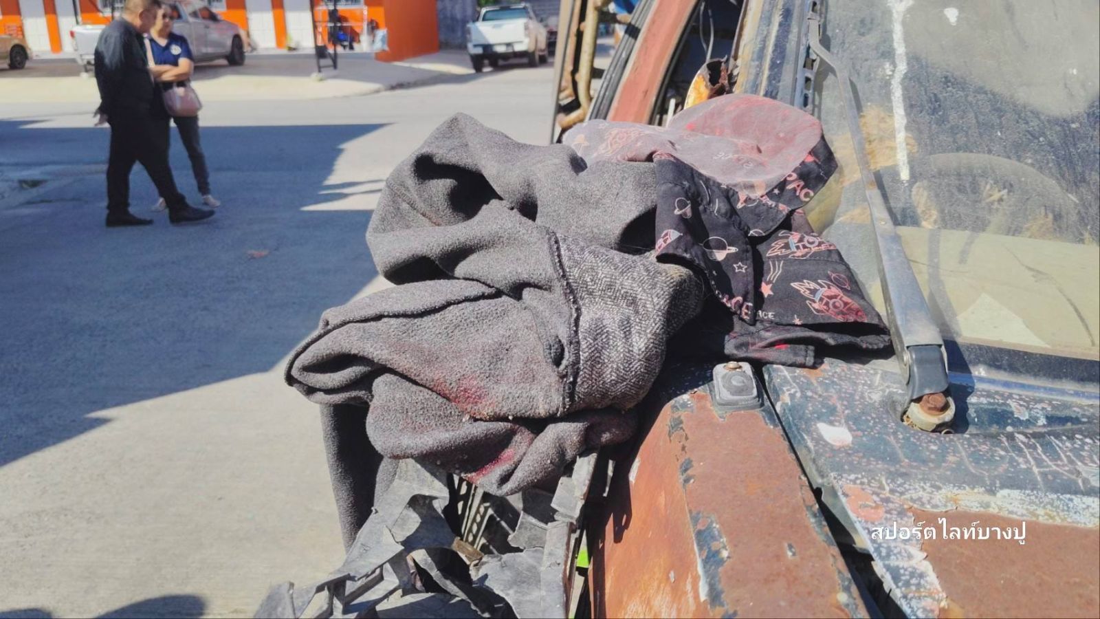 ที่เกิดเหตุพบ นายเอ (นามสมมุติ) อายุ 34 ปี มีบาดแผลถูกแทงที่ลำคอ ยาวประมาณ 2 นิ้ว อาการสาหัส นอนขอความช่วยเหลืออยู่หลังรถตู้ทึบ เจ้าหน้าที่กู้ภัยบางปูให้การช่วยเหลือก่อนนำส่งโรงพยาบาลสมุทรปราการ