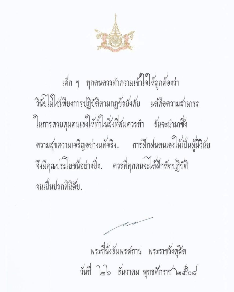 พระบาทสมเด็จพระเจ้าอยู่หัว พระราชทานพระบรมราโชวาท เพื่อเชิญลงพิมพ์ในหนังสือวันเด็กแห่งชาติ โดยพระราชทานข้อคิดแก่เด็กและเยาวชนว่า..