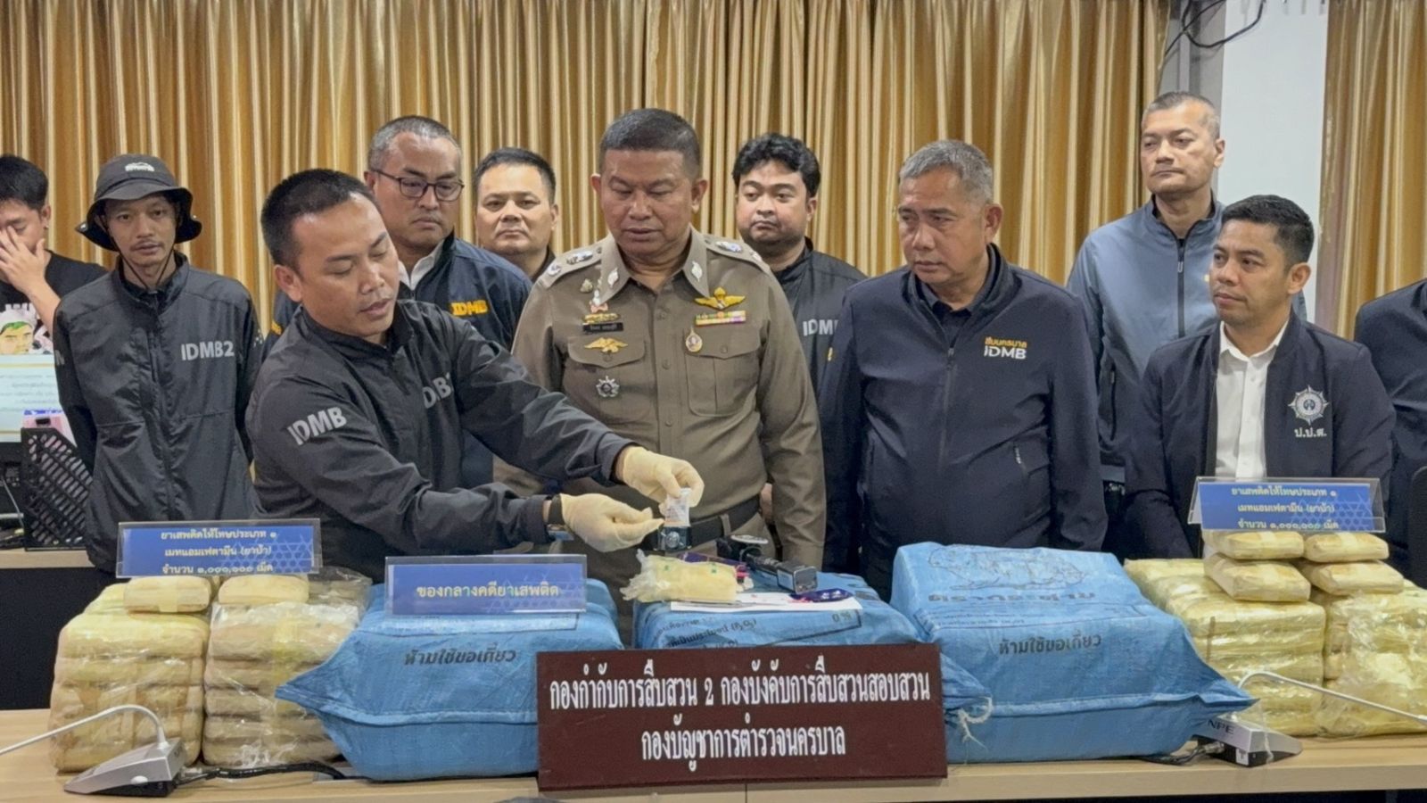 วันนี้ (9 ม.ค.) ที่กองบังคับการสืบสวนสอบสวน กองบัญชาการตำรวจนครบาล (บก.สส.บช.น.) พล.ต.ต.ธีรเดช ธรรมสุธีร์ รอง ผบช.น. และ เจ้าหน้าที่ ป.ป.ส. ร่วมกันแถลงจับกุม ผู้ต้องหาชาย อายุ 40 ปี พร้อมของกลางยาบ้า ประมาณ 1,000,000 เม็ด, รถนั่งสวนบุคคล 1 คัน และโทรศัพท์มือถือ 2 เครื่อง โดยจับกุมได้ที่บริเวณหน้าด่านเก็บเงิน ด่านลาดกระบัง (ขาออก) ถนนหมายเลข 7 อ.บางเสาธง จ.สมุทรปราการ