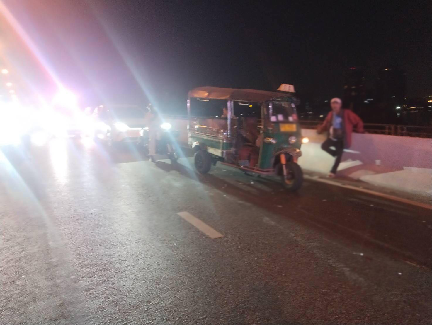 ทีมงานได้รับแจ้งจาก ผู้พบเหตุการณ์ เล่าว่า ระหว่างที่ใช้เส้นทางขึ้นสะพานพระราม 5 จะมุ่งหน้าไปทางแยกบางสีทอง เมื่อมาถึงช่วงกลางสะพาน พบรถจักรยานยนต์ล้มคว่ำ และมีรถสามล้อเครื่องจอดอยู่ใกล้กัน ห่างออกไปที่กลางถนนพบร่างของผู้บาดเจ็บ 1 ราย ระหว่างนั้นพบว่า มีรถเก๋ง 2 คันที่ขับตามหลังมา ได้ทับร่างของผู้บาดเจ็บซ้ำ แล้วขับลงไปจอดอยู่ที่เชิงทางลงสะพาน บริเวณหน้าทางเข้าซอยวัดสังฆทาน ในส่วนของสาเหตุที่แท้จริงนั้นอยู่ที่การสอบสวนของเจ้าหน้าที่ตำรวจ สภ.บางศรีเมือง