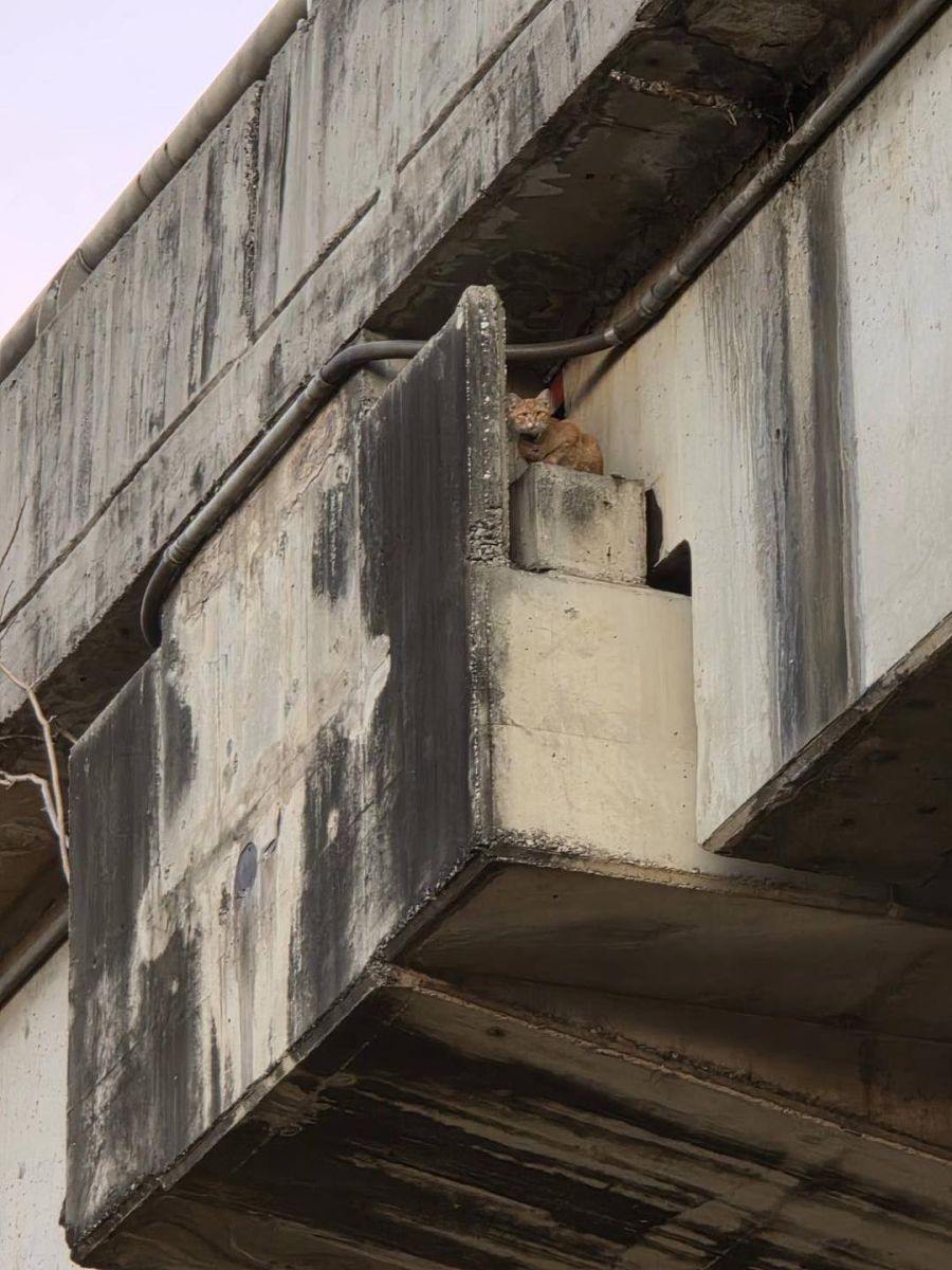 ส่วน ผู้ที่พบแมวเป็นคนแรก (ไม่ประสงค์เปิดหน้า) เล่าว่า ตนเองได้ยินเสียง น้องแมว มาแล้วประมาณ 2 วัน ก็เดินหากันแต่ก็ไม่เจอ โดยวันนี้ได้เงยหน้าขึ้นไปบนสะพานก็พบกับน้องแมว โดยที่ตนเอง พบ ว่าน้องแมวนั้นนั่งอยู่บนตอม่อ โดยเมื่อตอนเช้าที่เจอตนเองปืนขึ้นไปดูก่อนแต่ไม่เจอเพราะปืนผิดเสา ช่วงเย็นจึงได้แจ้งเจ้าหน้าที่ประสานงานเข้าช่วยเหลือ