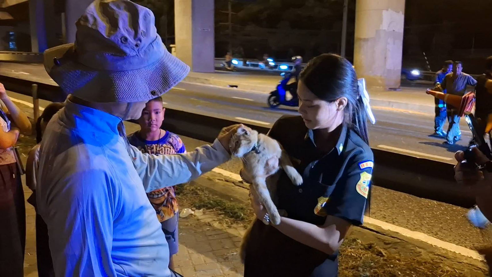 เมื่อเวลา 19.00 น. วันที่ 11 มกราคม 2569 เจ้าหน้าที่บรรเทาสาธารณภัย เทศบาลตำบลด่านสำโรง จังหวัดสมุทรปราการ รับแจ้งจากประชาชนว่าพบแมวติดอยู่บนเสาตอม่อสะพานข้ามแยกศรีเทพา ถนนศรีนครินทร์ ตำบลเทพารักษ์ อำเภอเมือง จังหวัดสมุทรปราการ ซึ่งมีความสูงมากกว่า 10 เมตร จึงนำรถกระเช้าเข้าทำการช่วยเหลือ